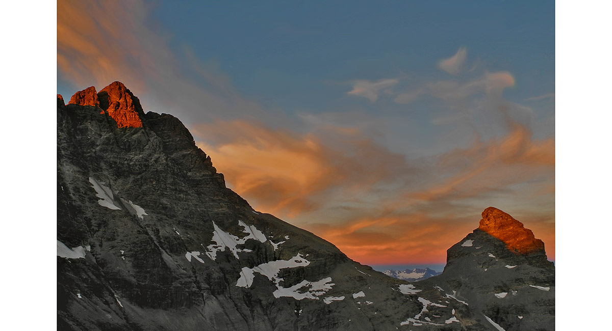 Sunrise view to Earnslaw West (left) and Pluto Peak