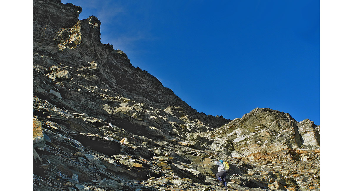 Above Wright Col, at the beginning of the route to the summit of Earnslaw East