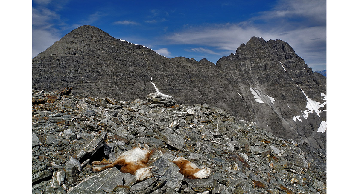 Approaching Esquilant Bivy (2,200m). Pluto peak (2,480m) at left