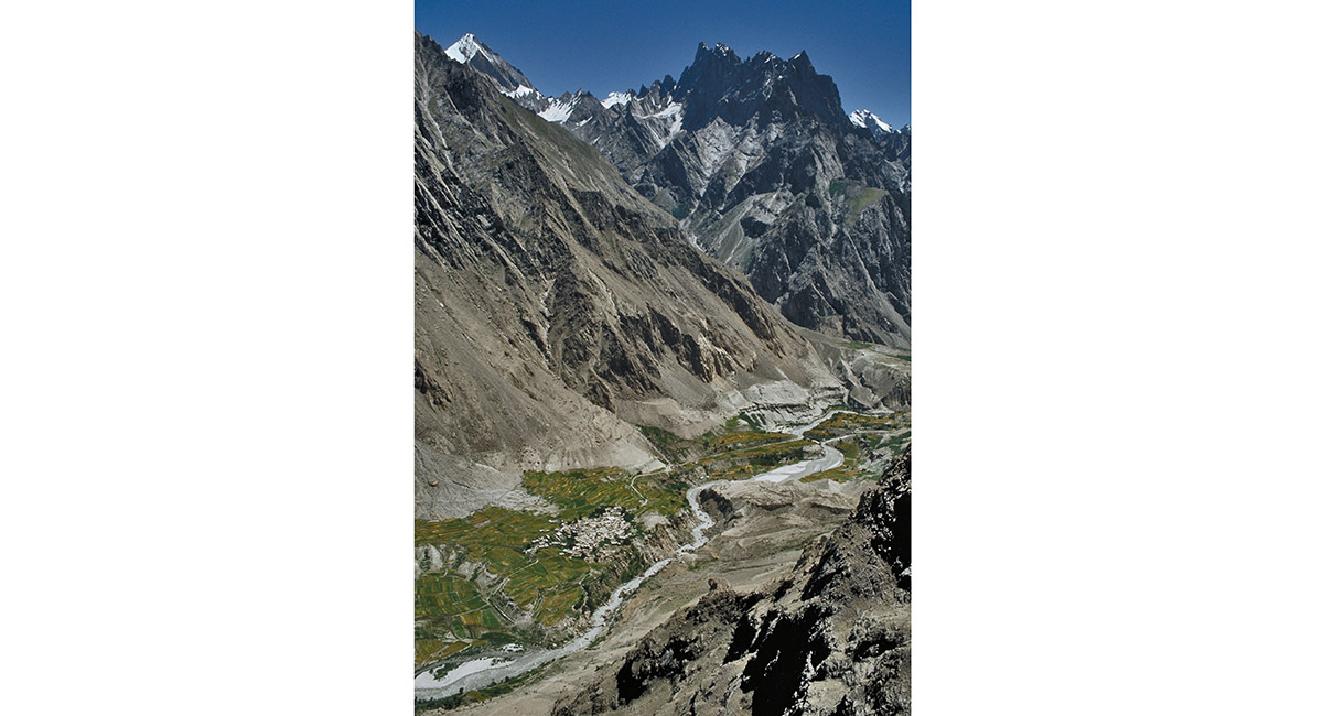 A view towards the summer settlement above Hushe (4,000m), accessed via the very steep Honbruk valley