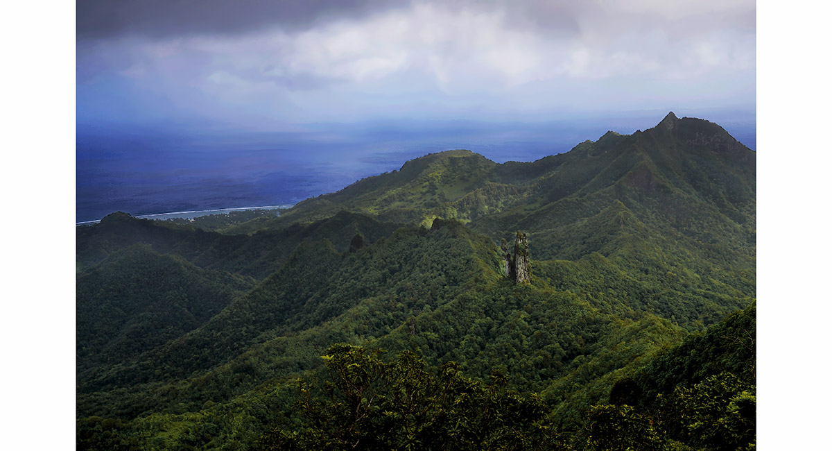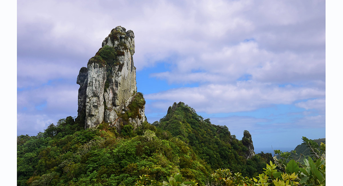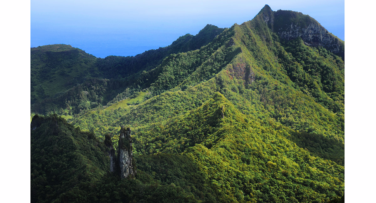 View to Te Rua Manga (413m) - the Needle, from 588m on top of Te Ko'u
