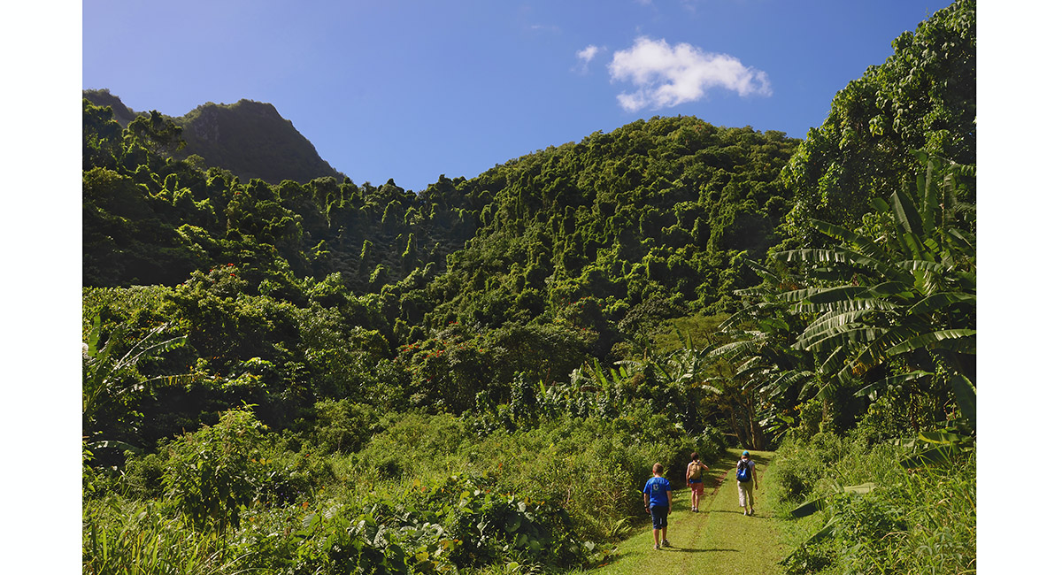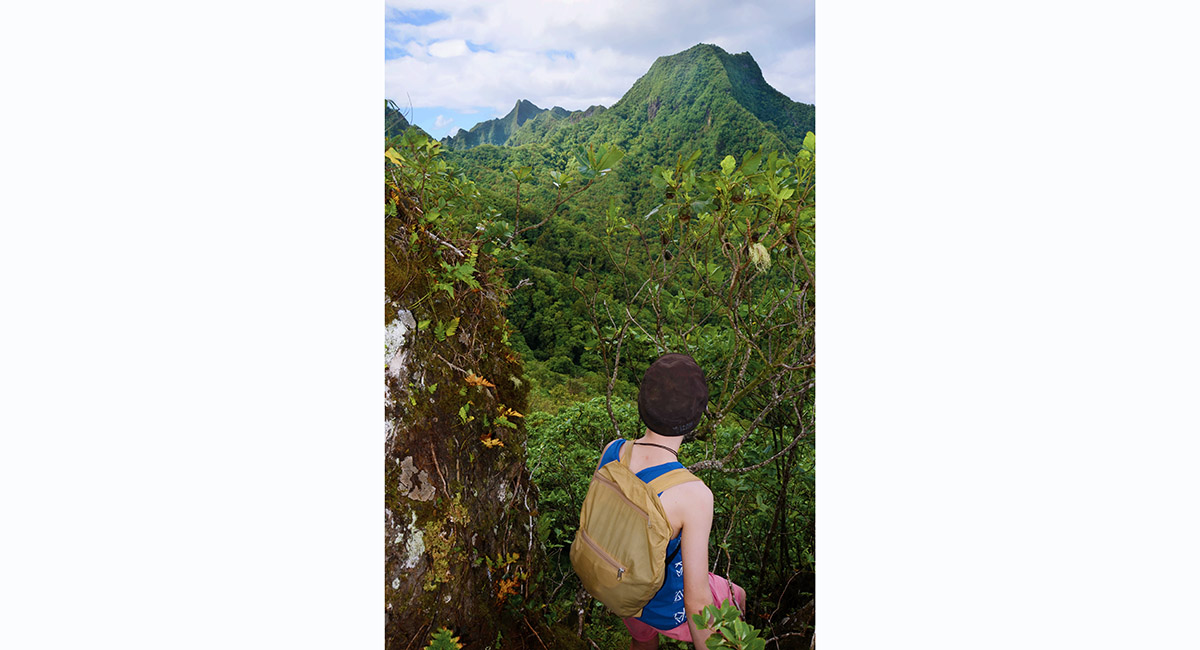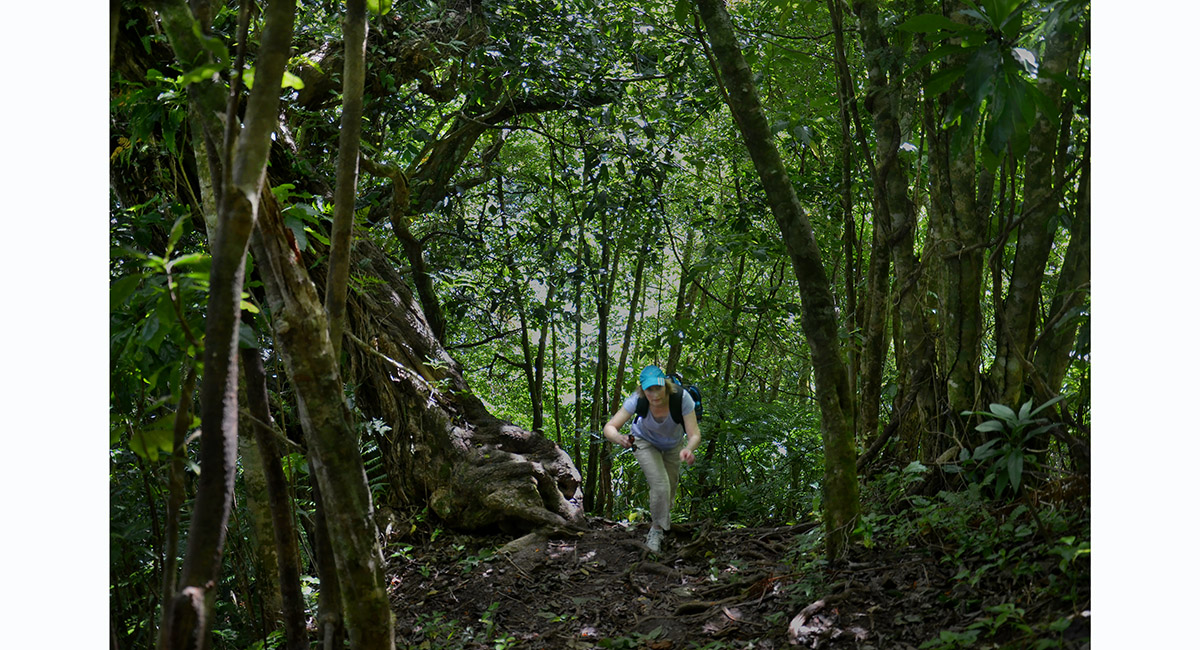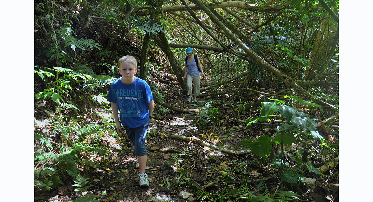 Climbing through dense forest towards Te Rua Manga (413m) and the pass giving access from north to south
