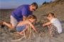 Ben and Beth with Grandad, sand castles, Christmas 1998