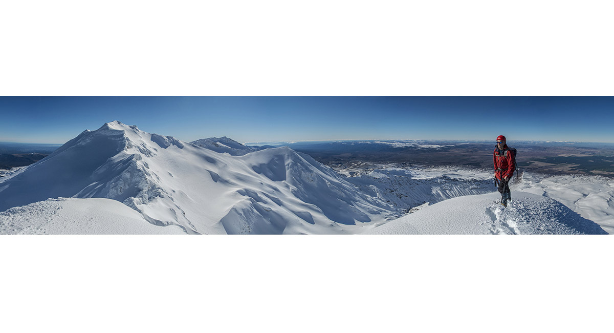 Girdlestone summit view north and east - from left, Tahurangi (2,797m), Tukino (2,720m), Te HeuHeu (2,732m) and Mitre/Ringatoto (2,591m)