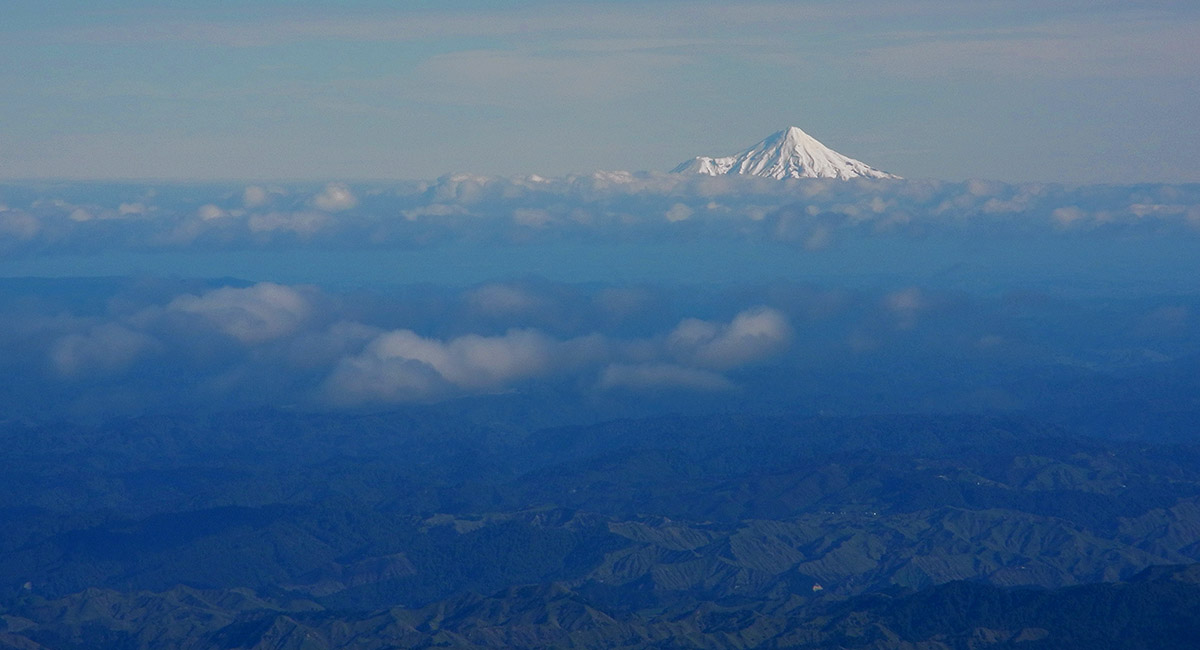 Mt Taranaki (2,518m), viewed from about 2,000m on the south east face of Mt Ruapehu