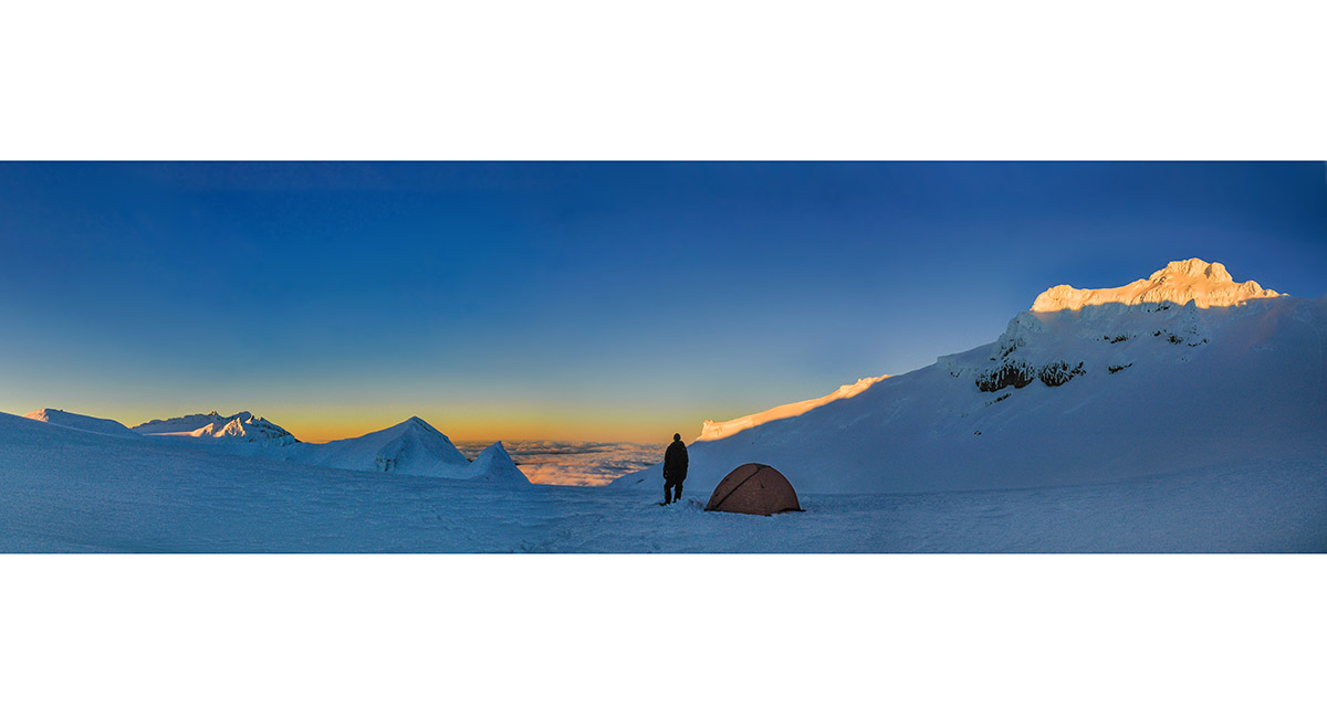 At dawn looking east across Pyramid Peak, Summit Plateau