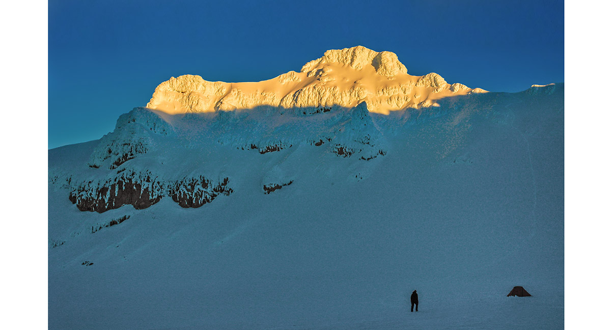 At our campsite south of the Crater Lake, enjoying the last rays of the sun on Tukino and Te HeuHeu (left) and Tahurangi (right)