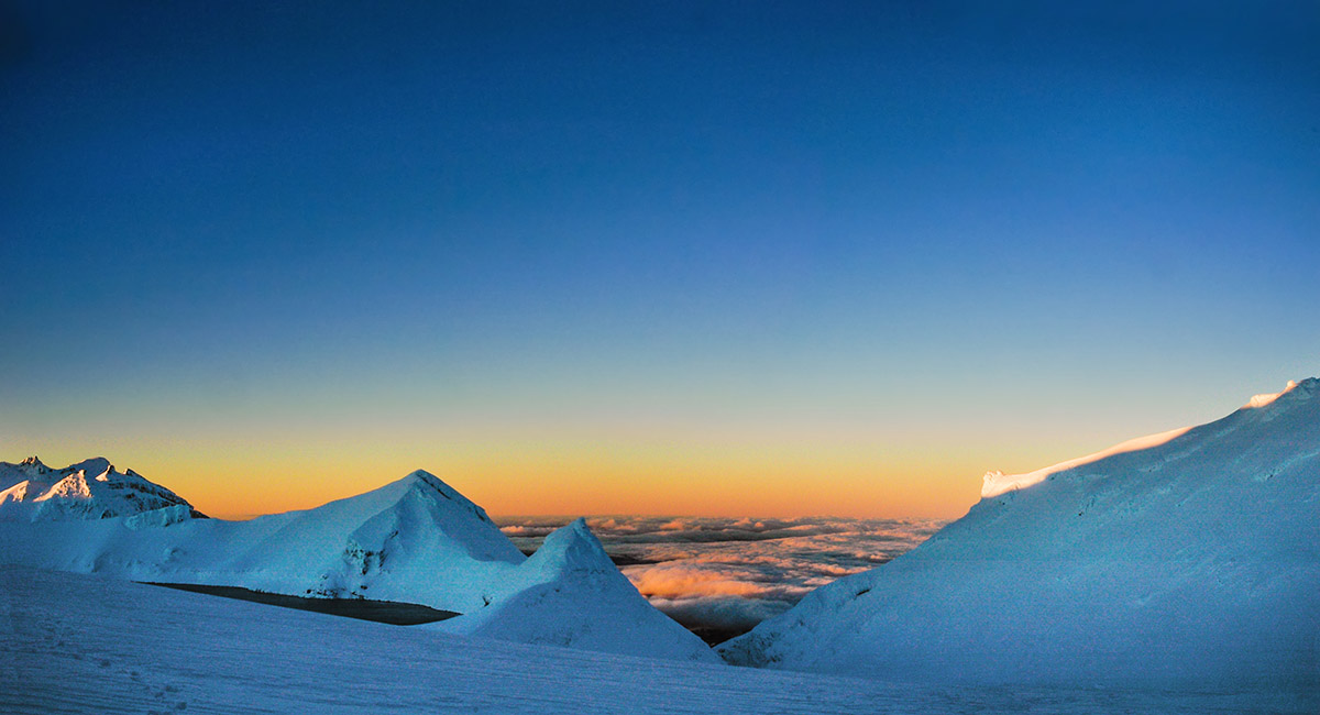 The view south to Tahurangi (2,797m – Ruapehu’s highest point) at sunset