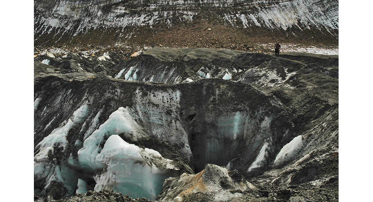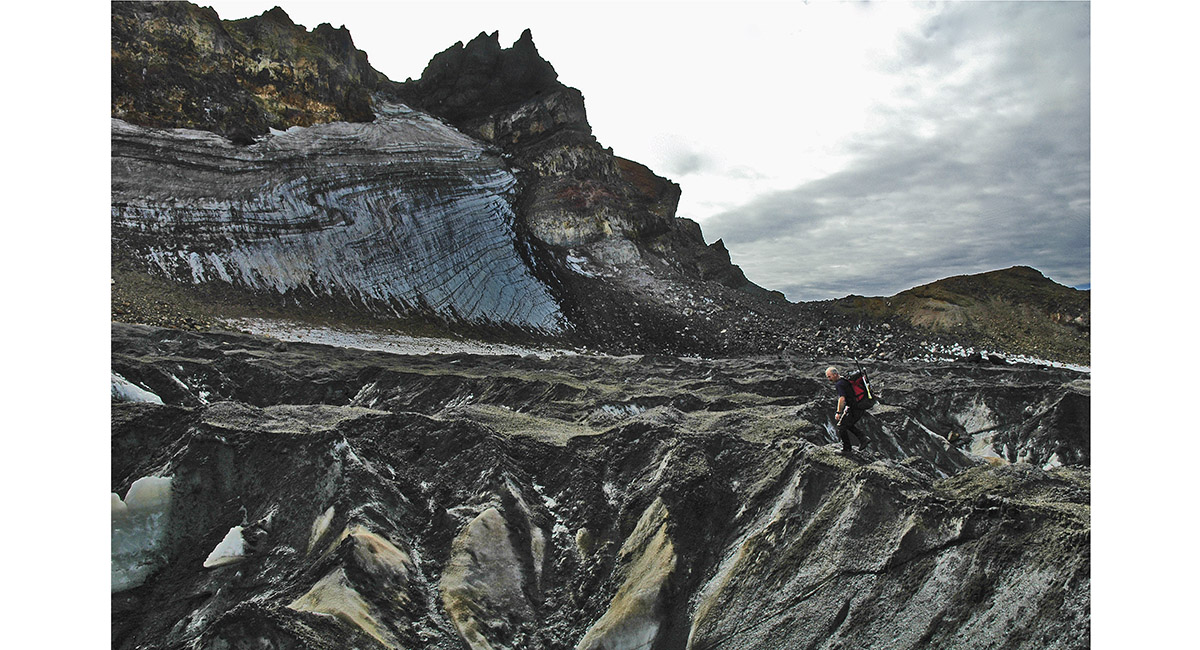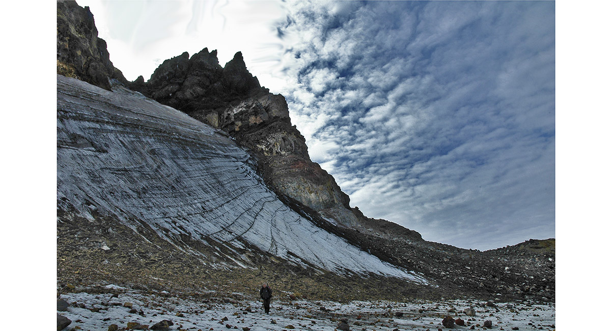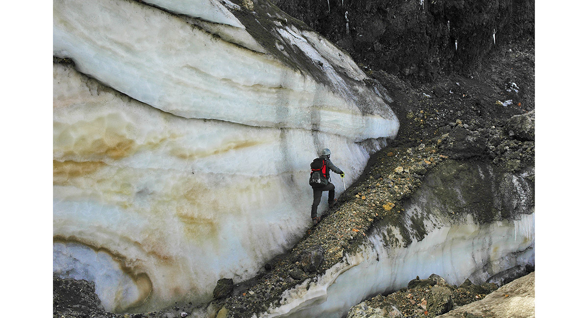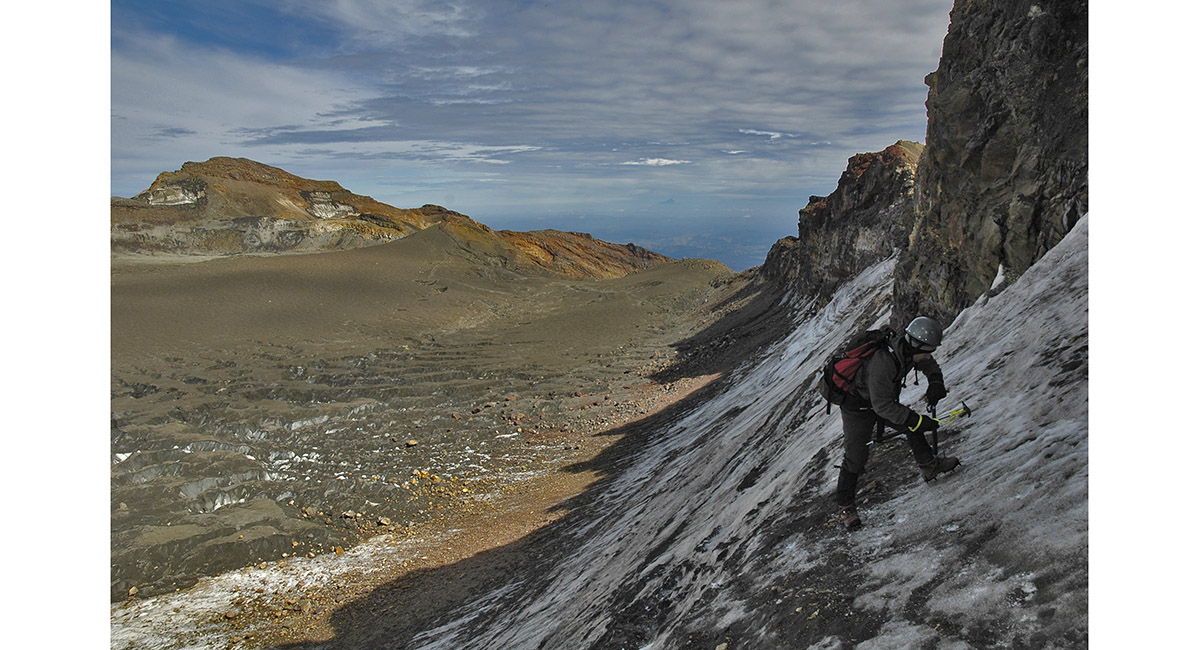 Approaching the 100 or so metre ice climb beneath Tukino Peak