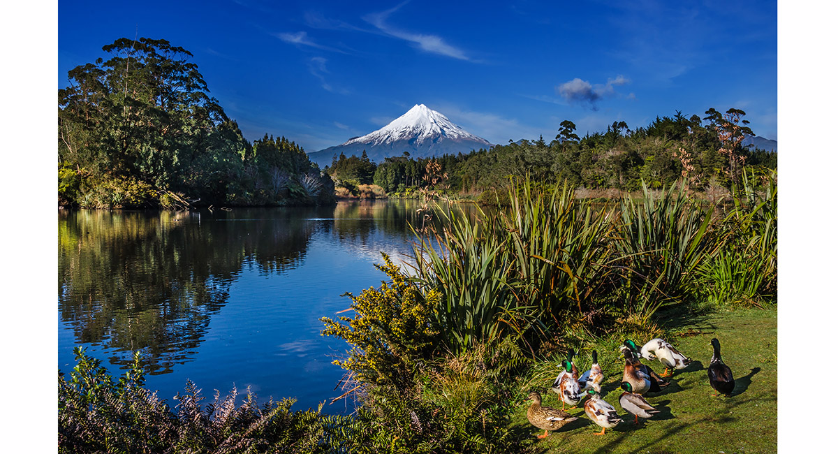 Mount Taranaki, across Lake Mangamahoe