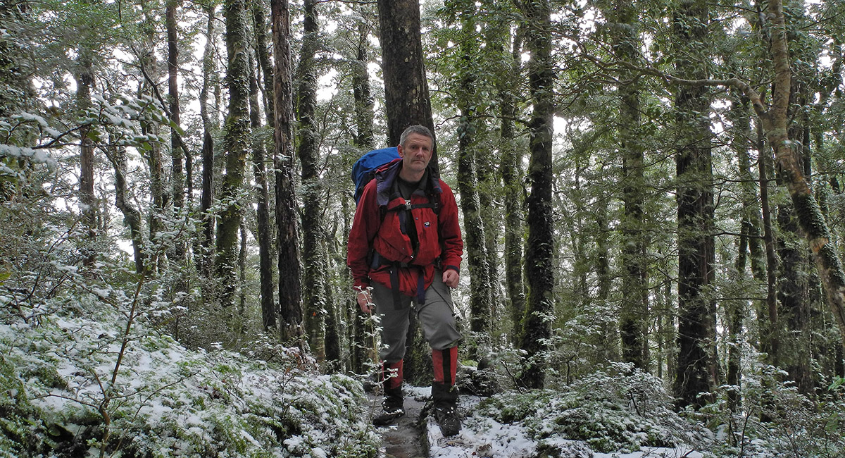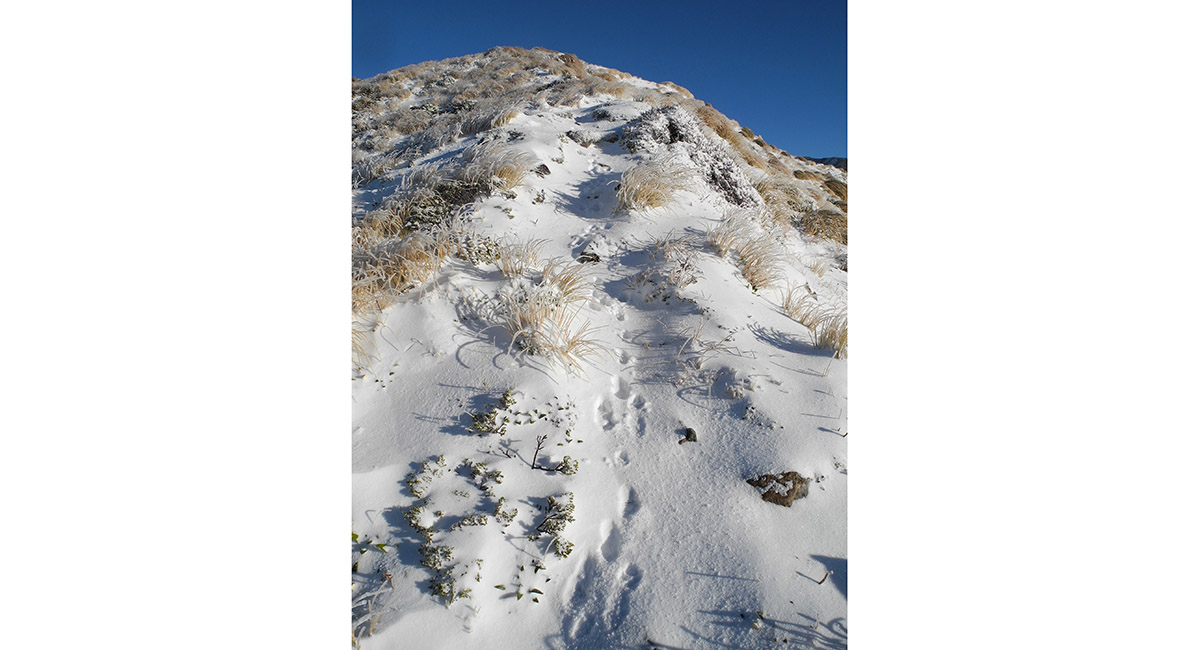 Reaching snow at about 700m on the Raingauge Spur Track below Jumbo Hut