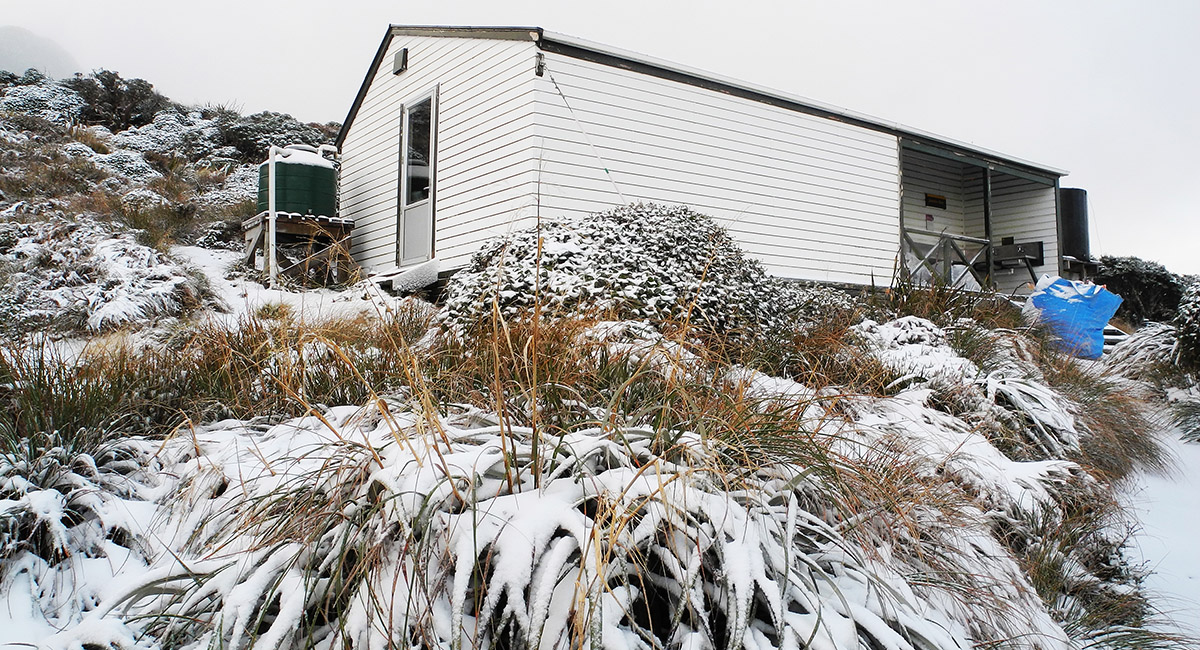 Jumbo Hut (1,130m). Frozen pipes but plenty of snow for melting