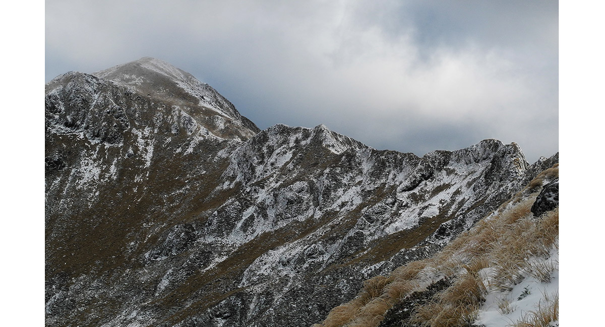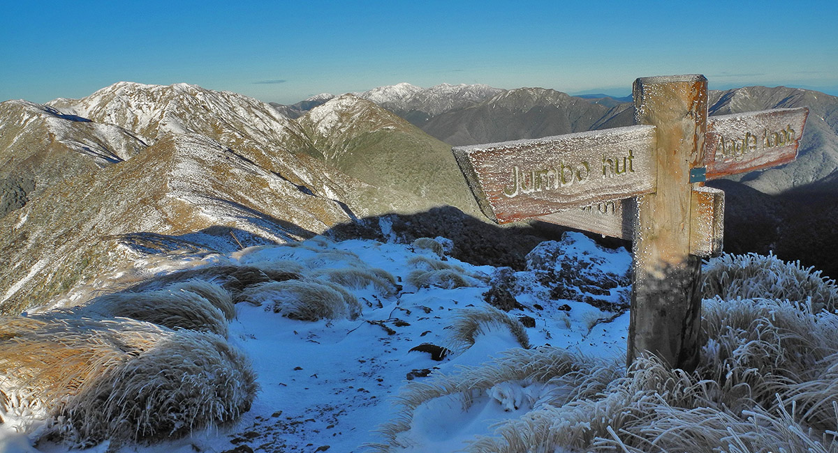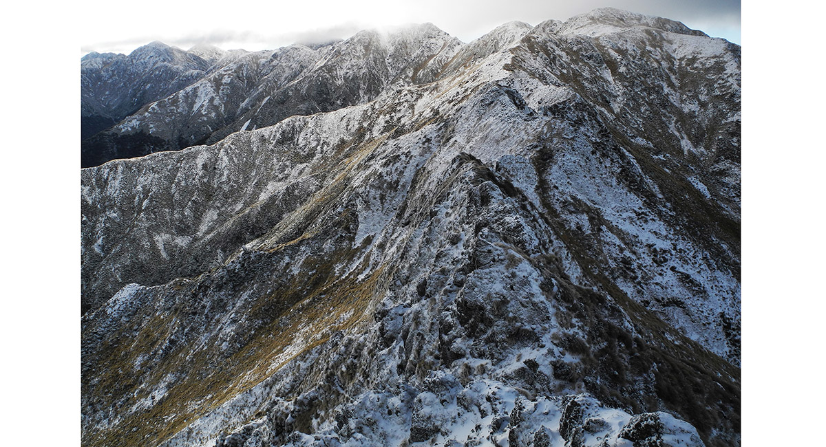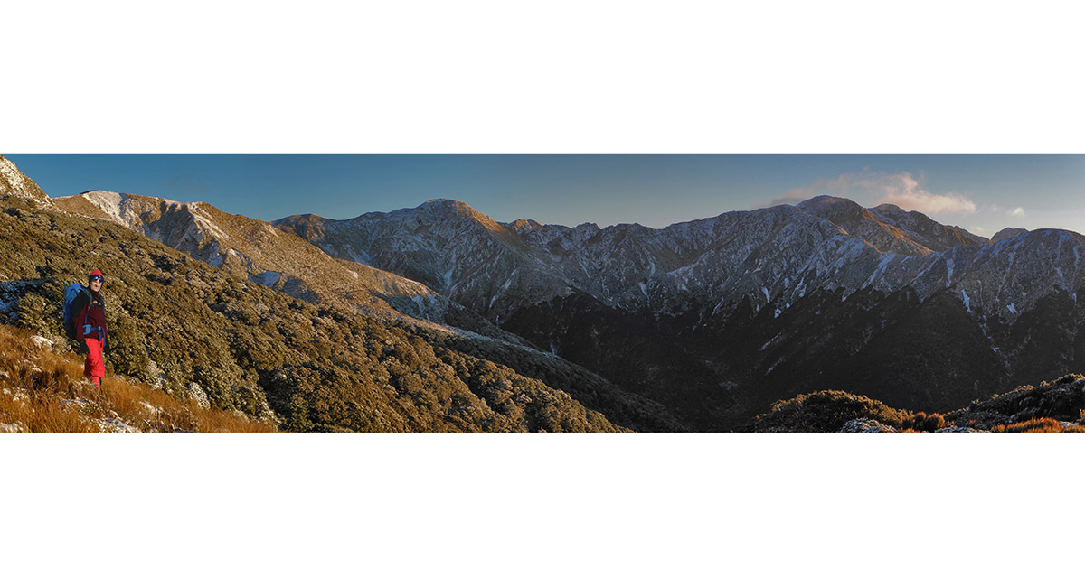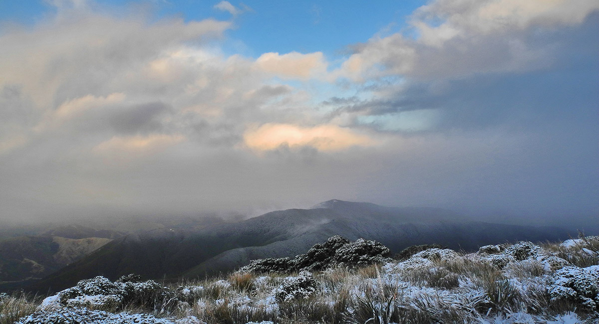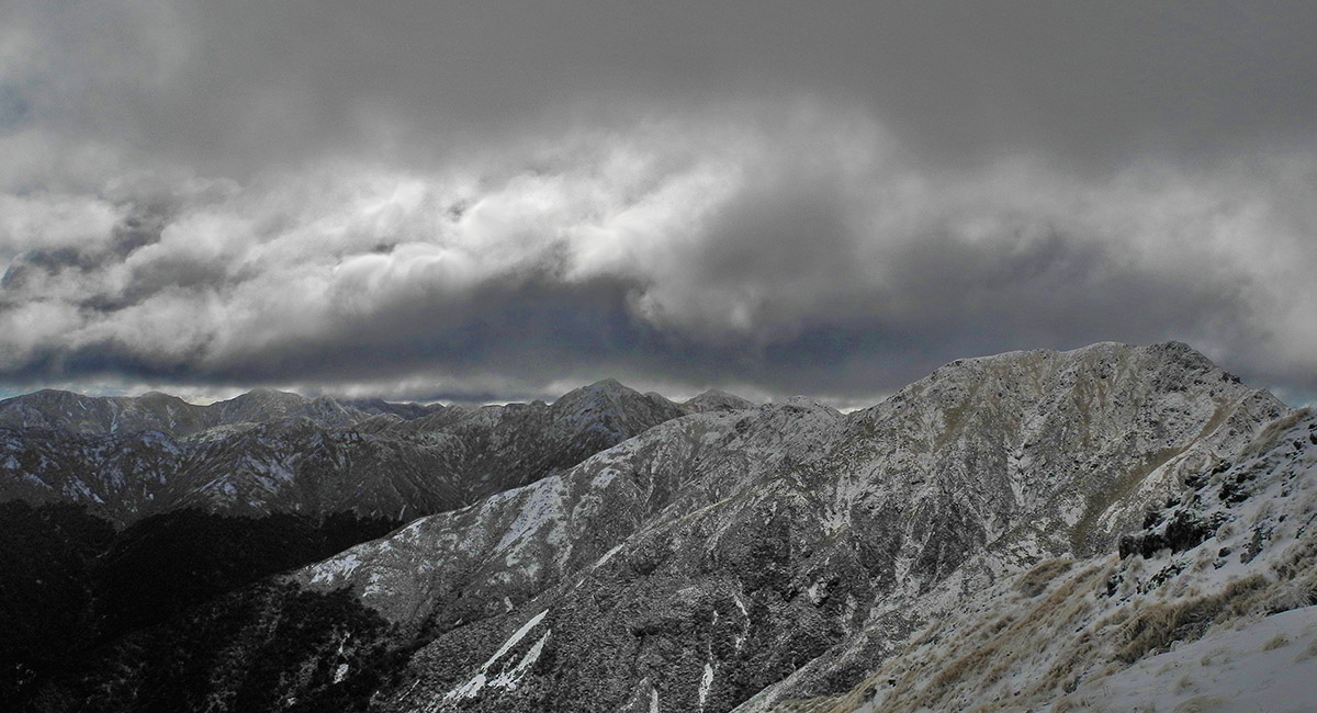 From McGregor (1,540m), looking south along the main spine of the Tararuas, from Jumbo to Mount Holdsworth (1,470m)