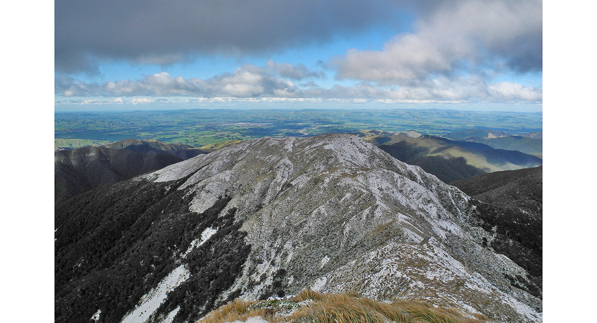 Above the bushline on Baldy ridge, looking east to the Wairarapa