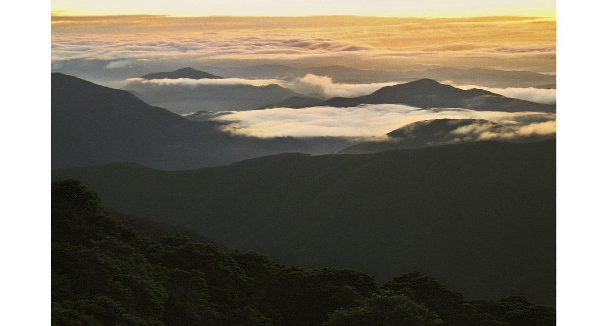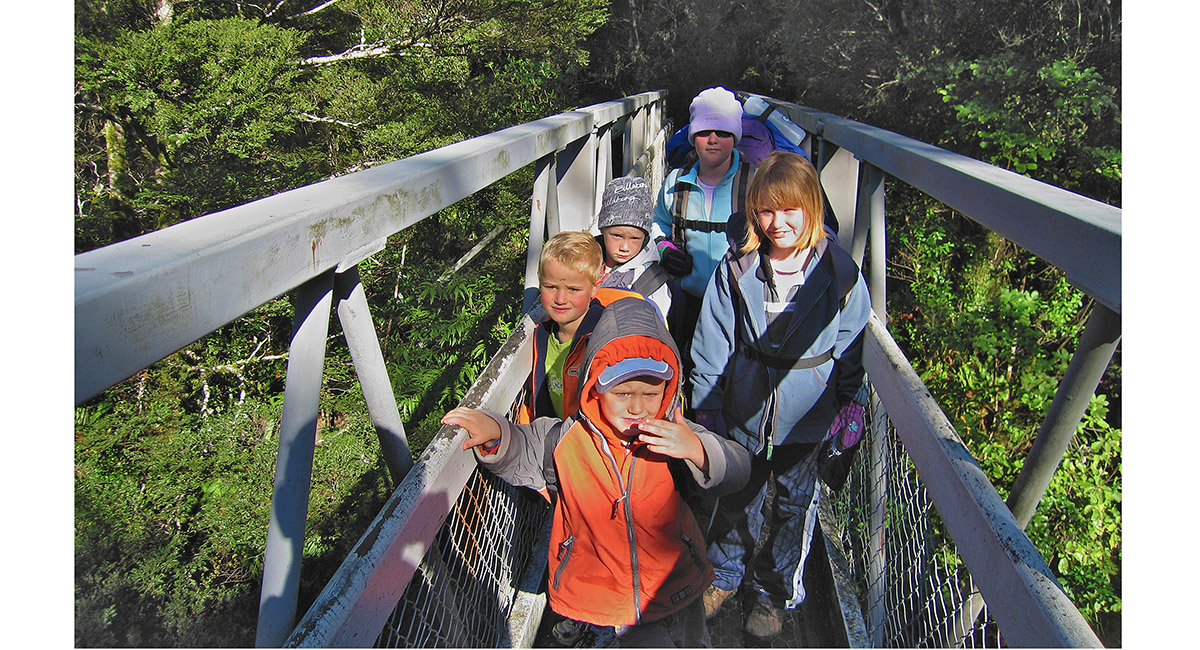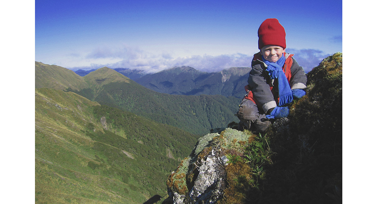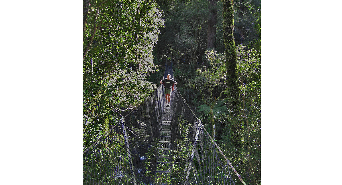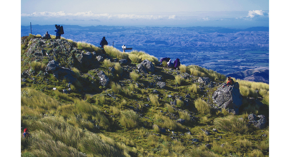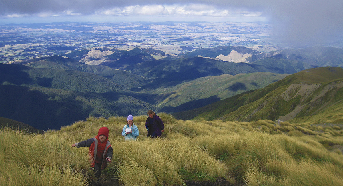 On the trail below Powell Hut at the bush line, looking southeast, down the Atiwhakatu Valley