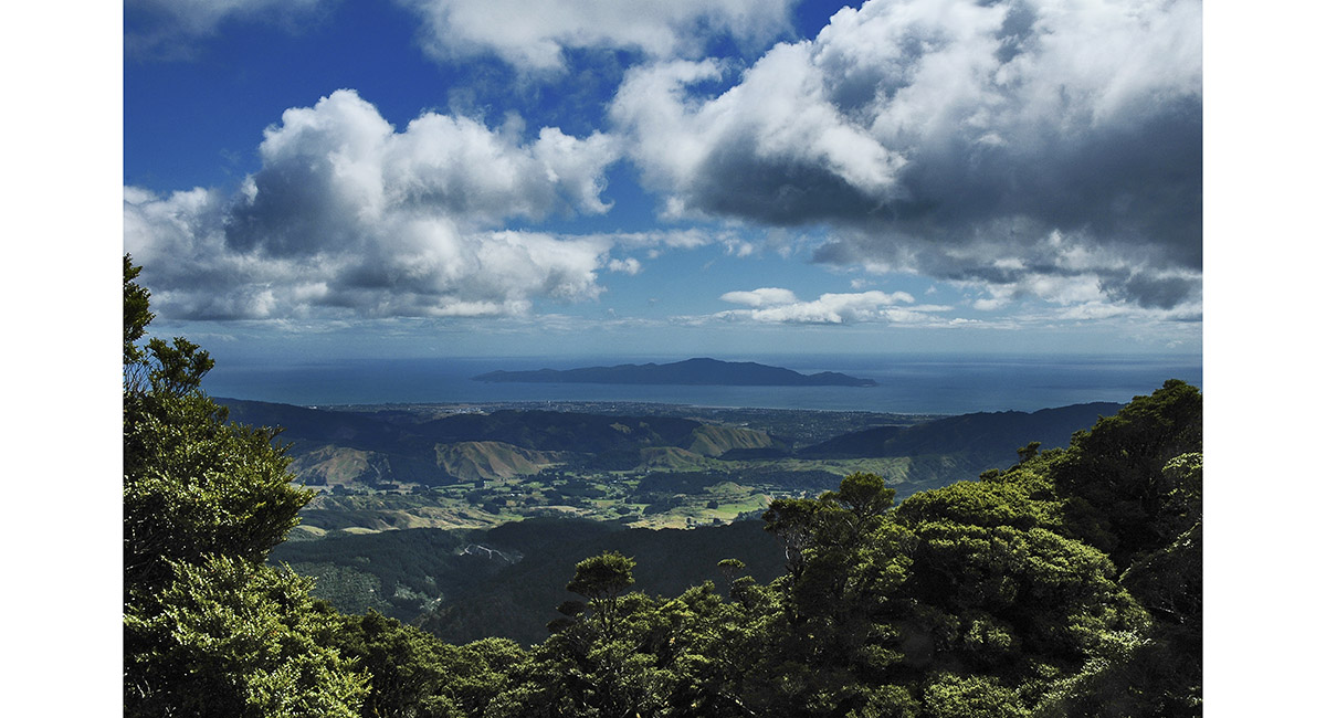 Looking west to Kapiti Island, from the top of Kapakapanui (1,102m)