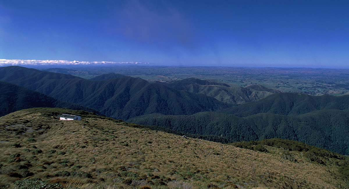 Looking southeast, down the Atiwhaktu Valley, past Powell Hut (1,220m)