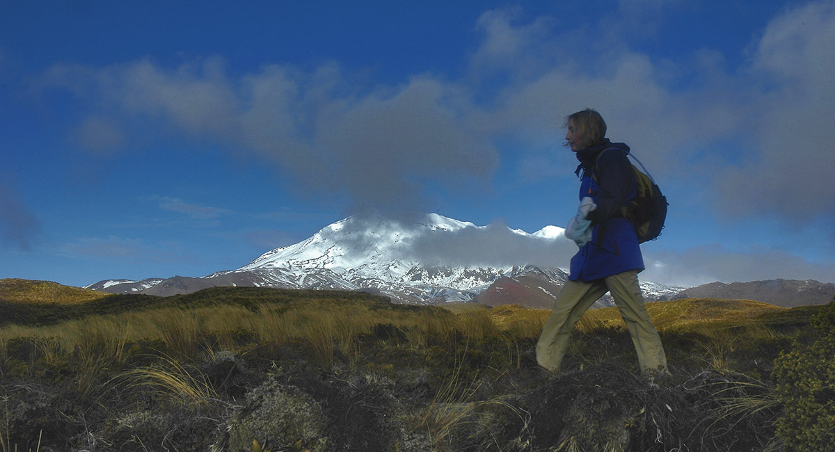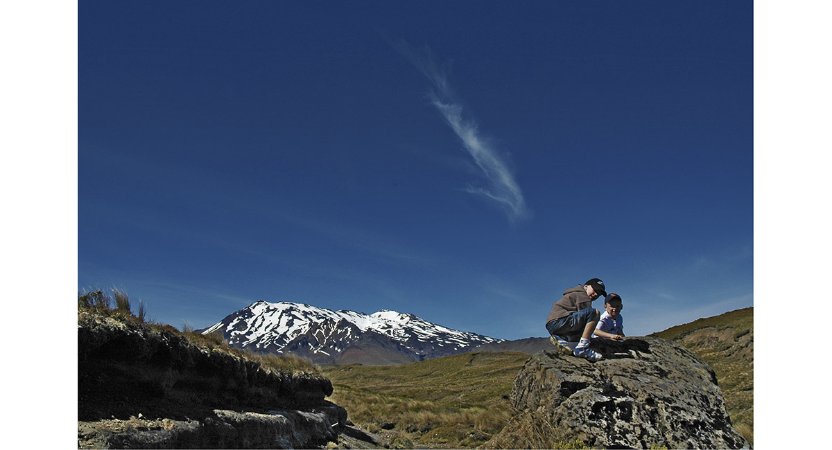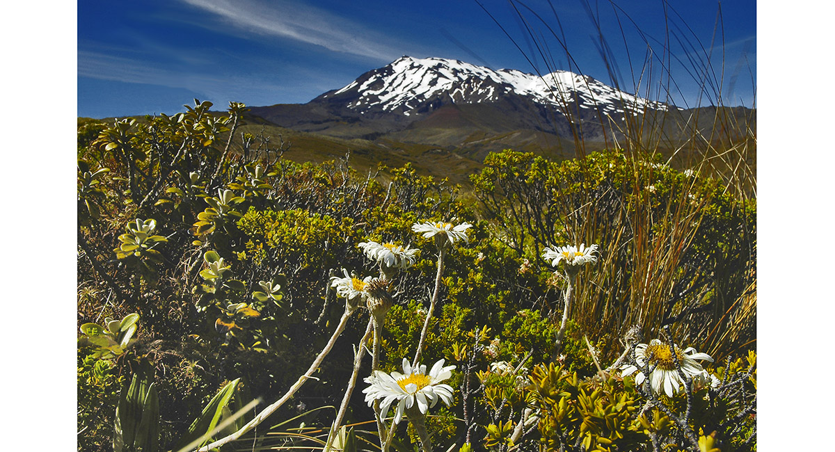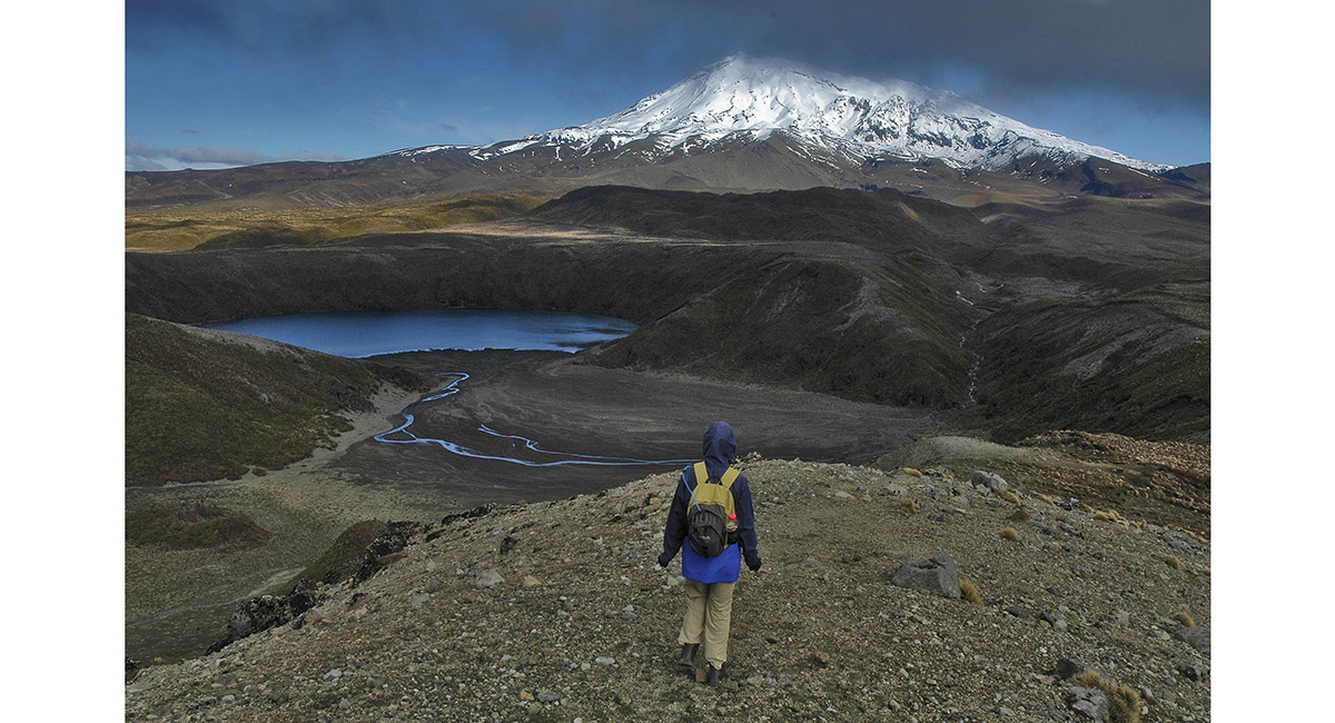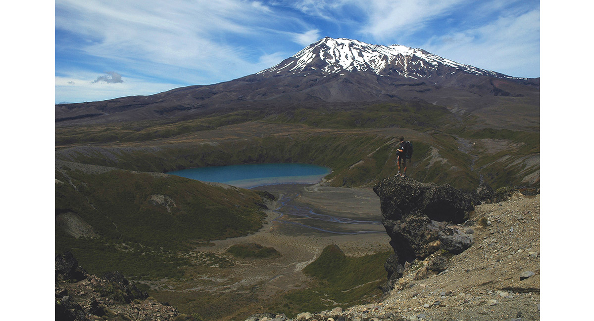 The Lower Tama Lake (1,220m) and Mount Ruapehu (2,797m)