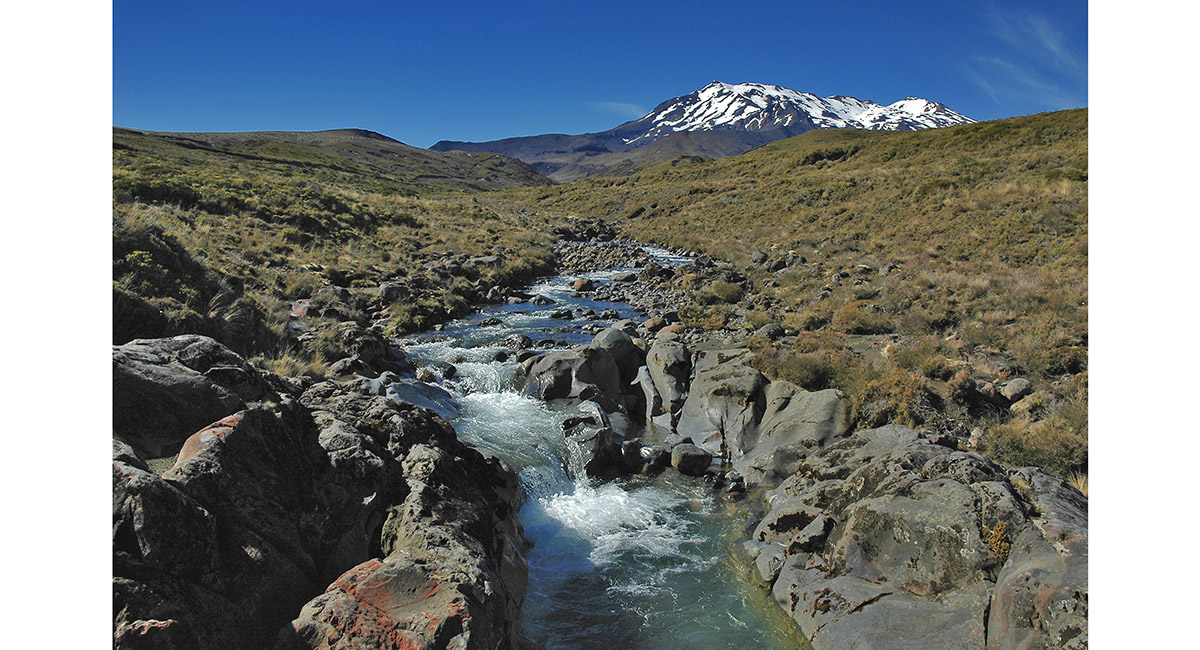 The Lower Tama Lake (1,220m) and Mount Ruapehu