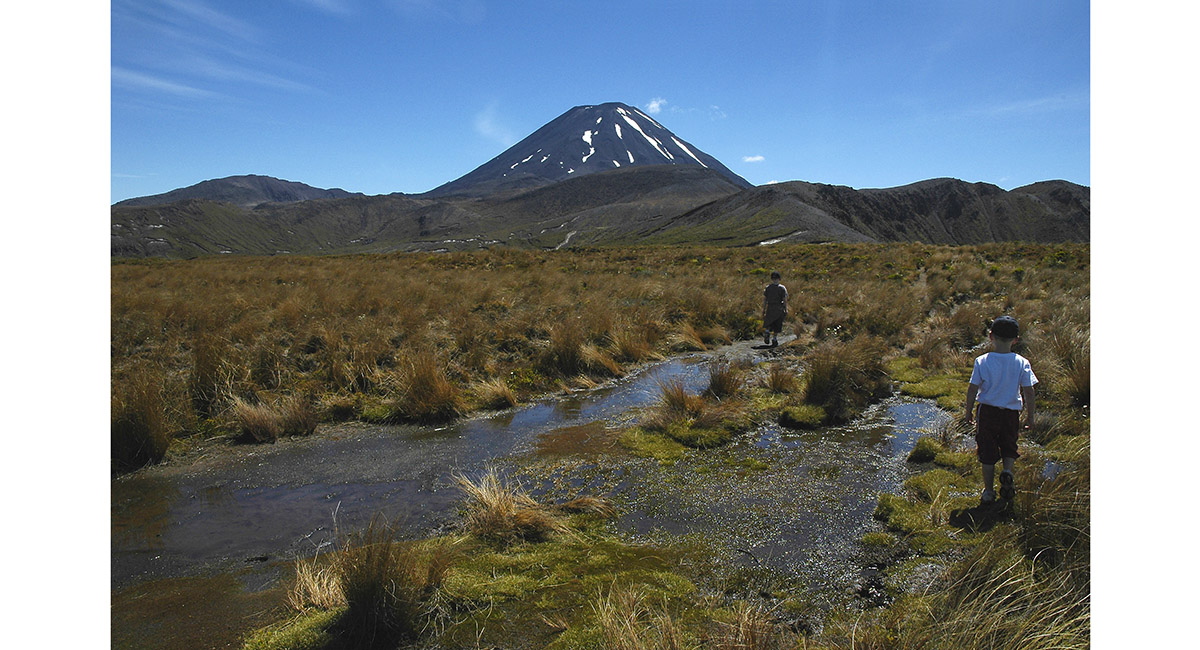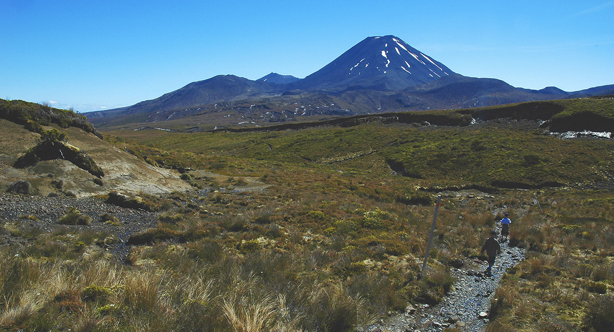 Mounts Ngauruhoe and Tongariro, viewed to the north east, at the beginning of the trail to the Tama Lakes