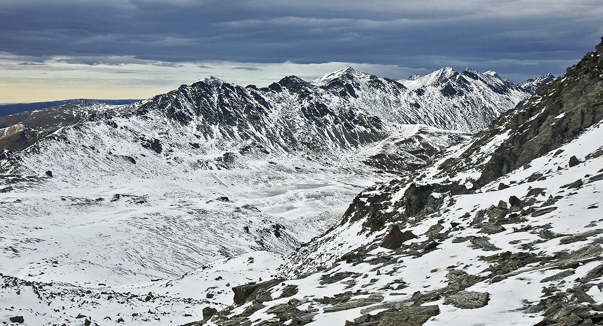 A bleak day in December 2012, from the lookout above Shadow Basin