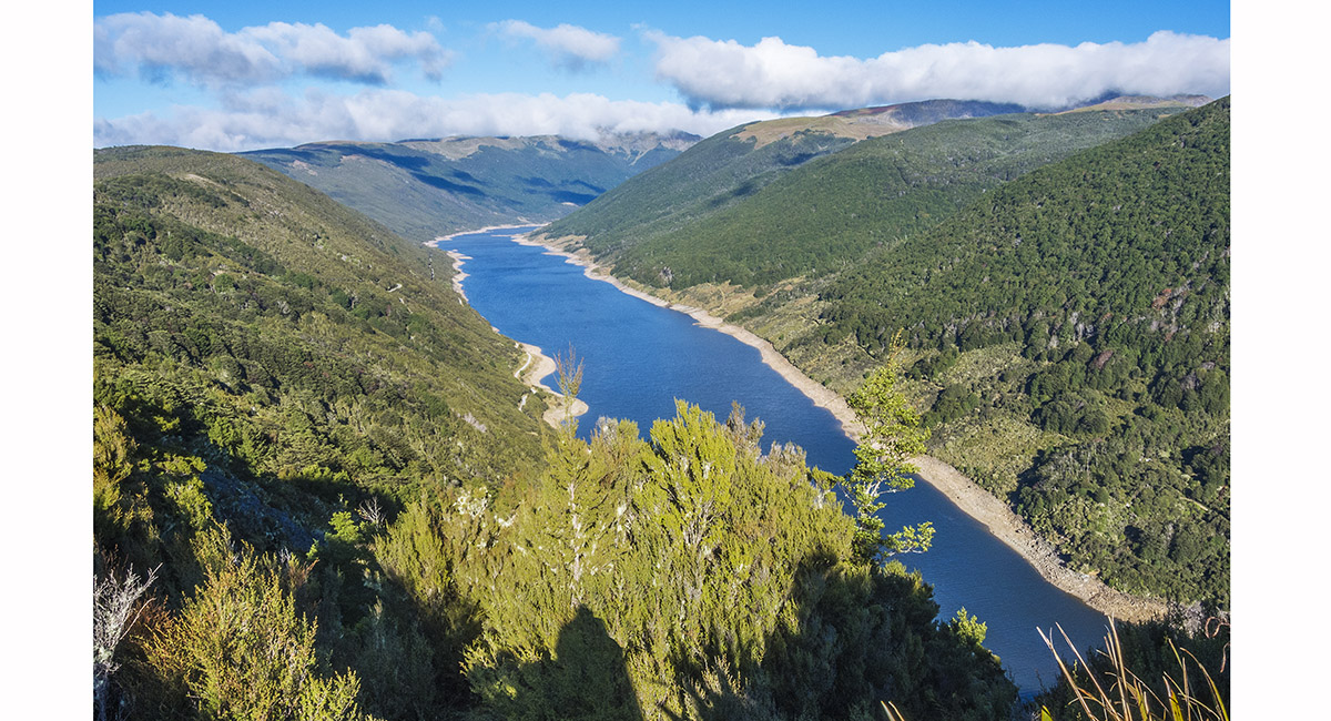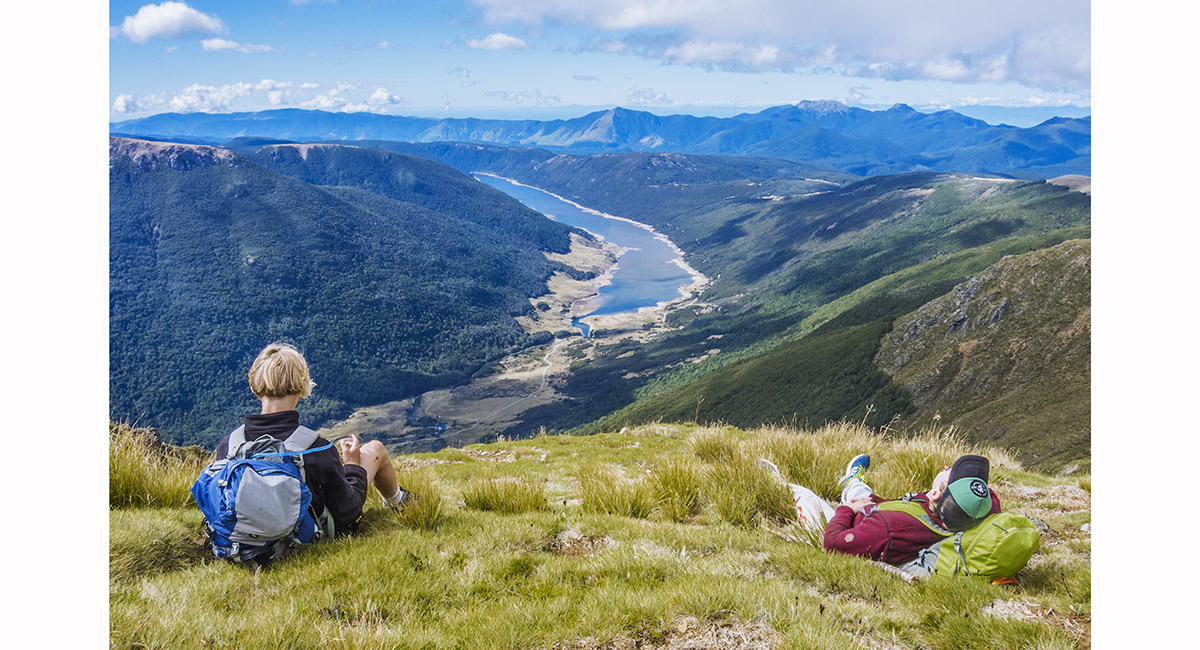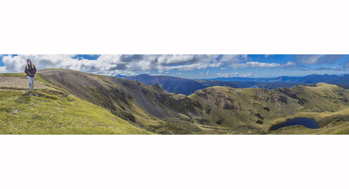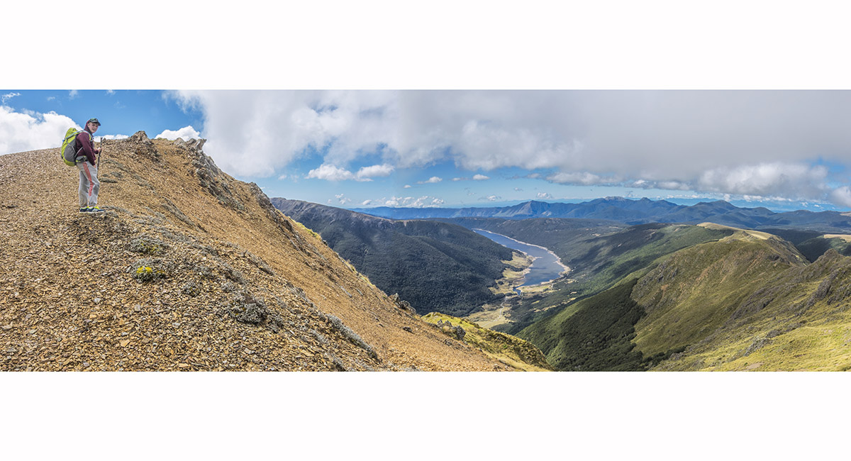 On the summit of Mt Peel (1,654m), looking east to Cobb Reservior (800m)
