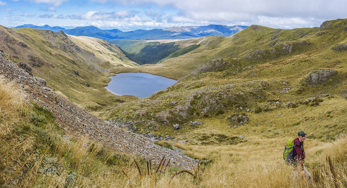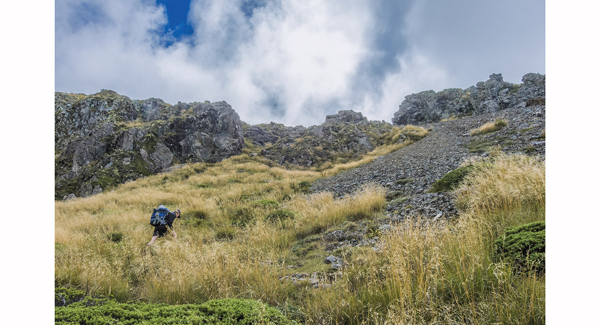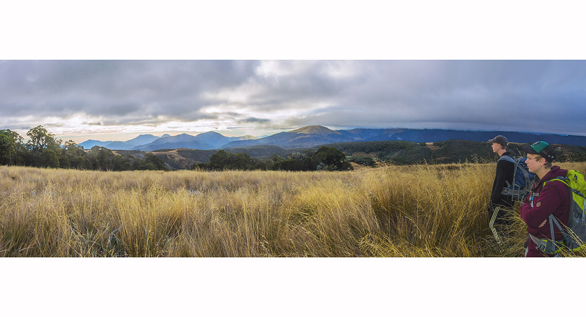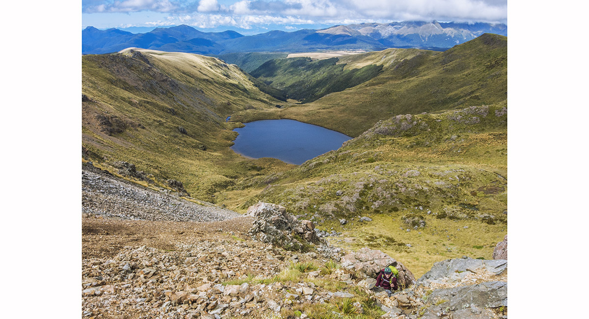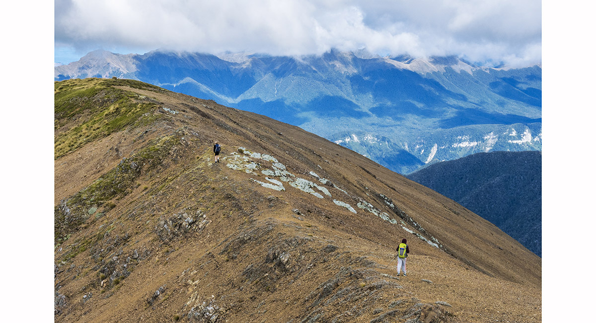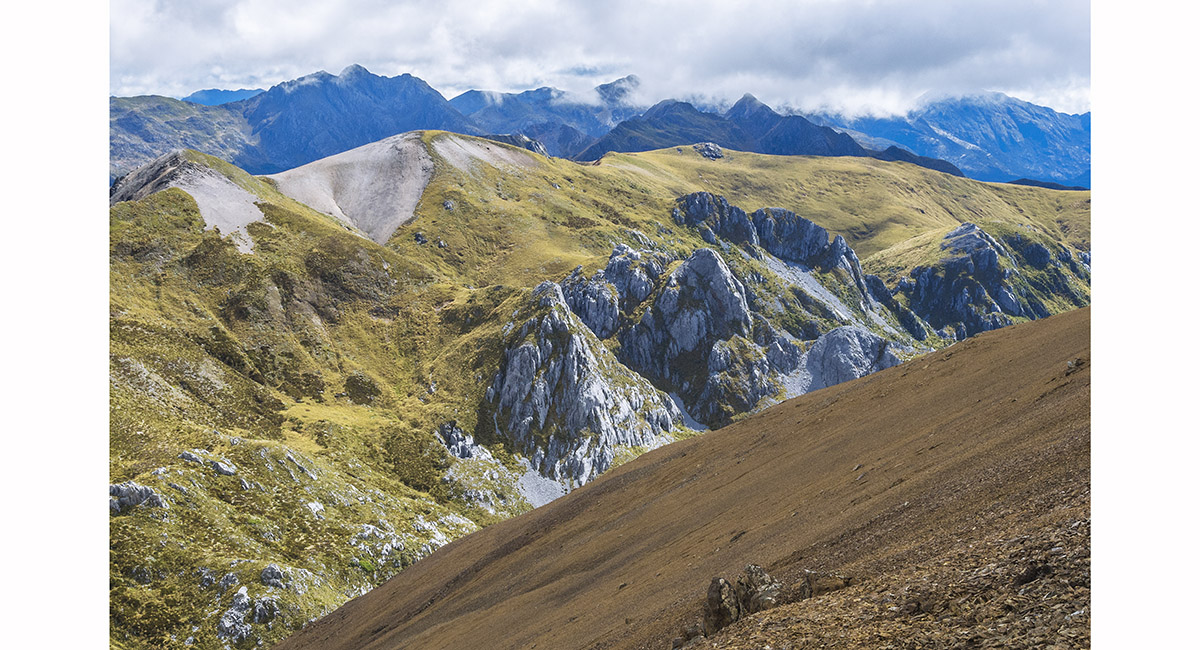 View west to Kakapo Spur, on the trail above Balloon Hut