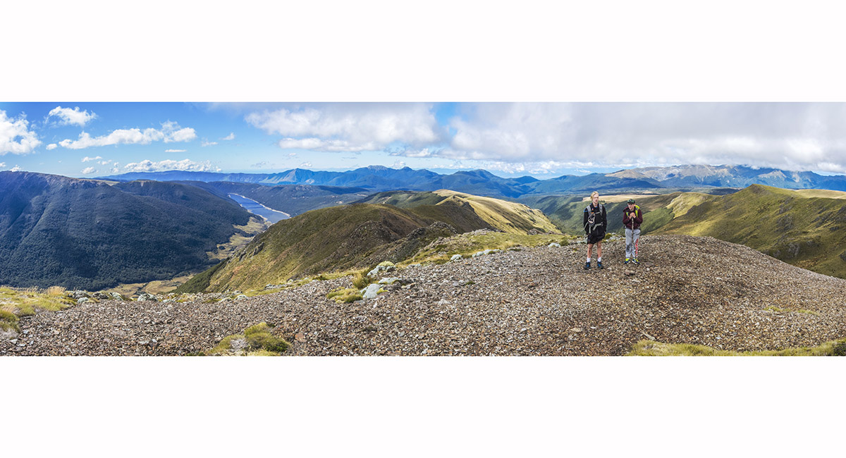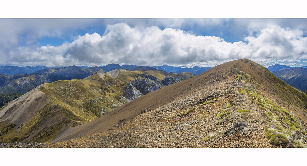 View northwest, approaching the summit of Mt Peel (1,654m)