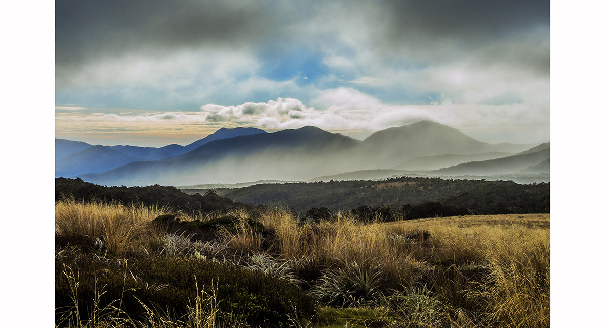 View east from Starvation Ridge (1,200m) to the Arthur Range