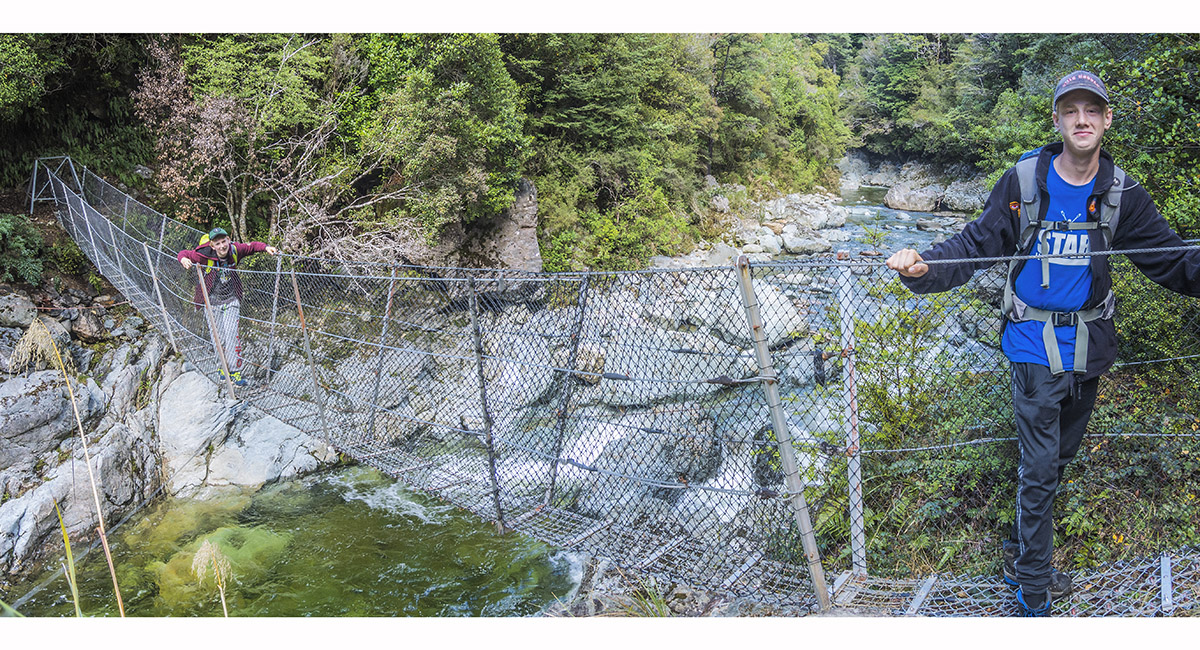 Swing bridge across the Takaka River, giving access to Bullock Track