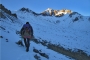 Heading up the summit ridge, having just exited the couloir at about 2,700m