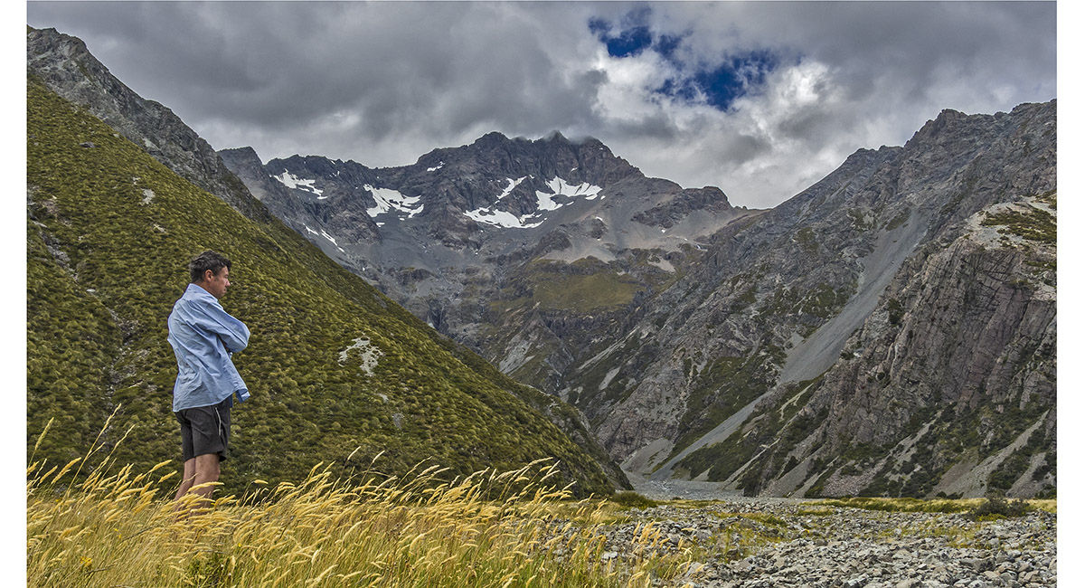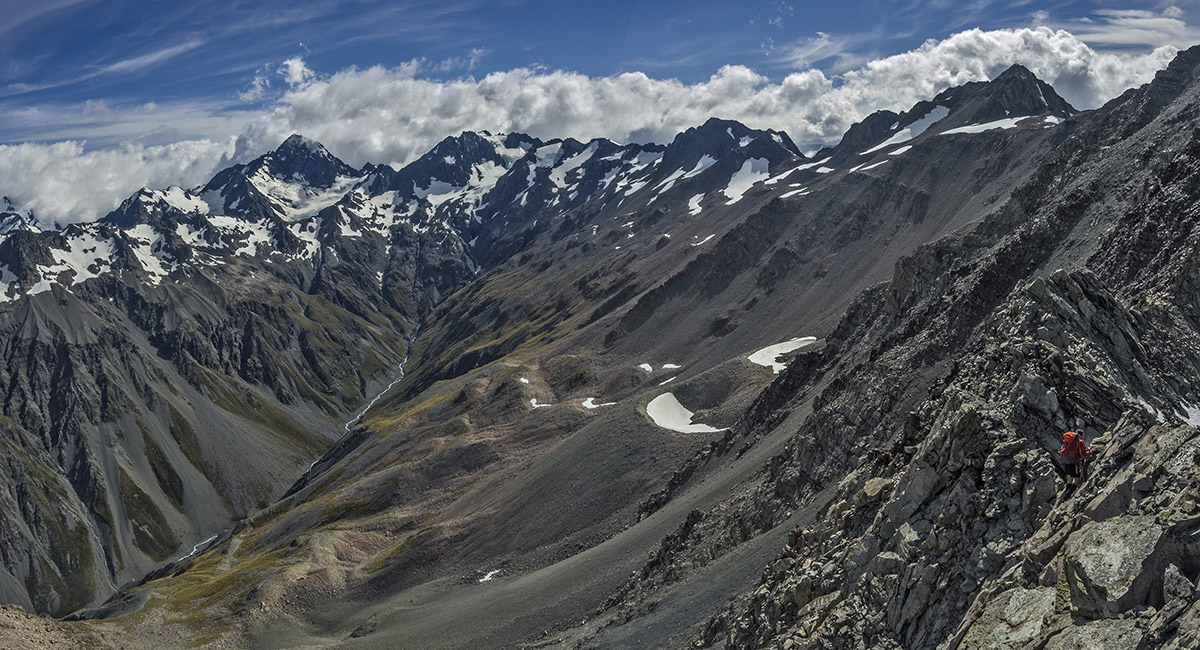 The Godley Valley and peaks beyond coming into full view as we ascend the ridge