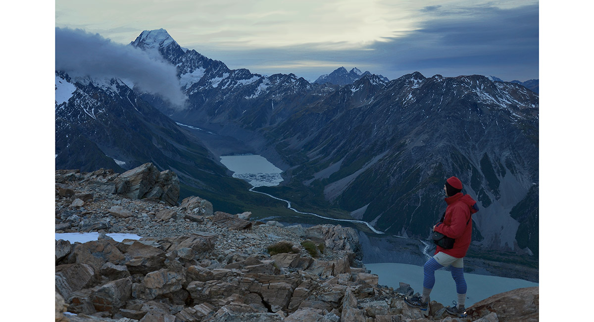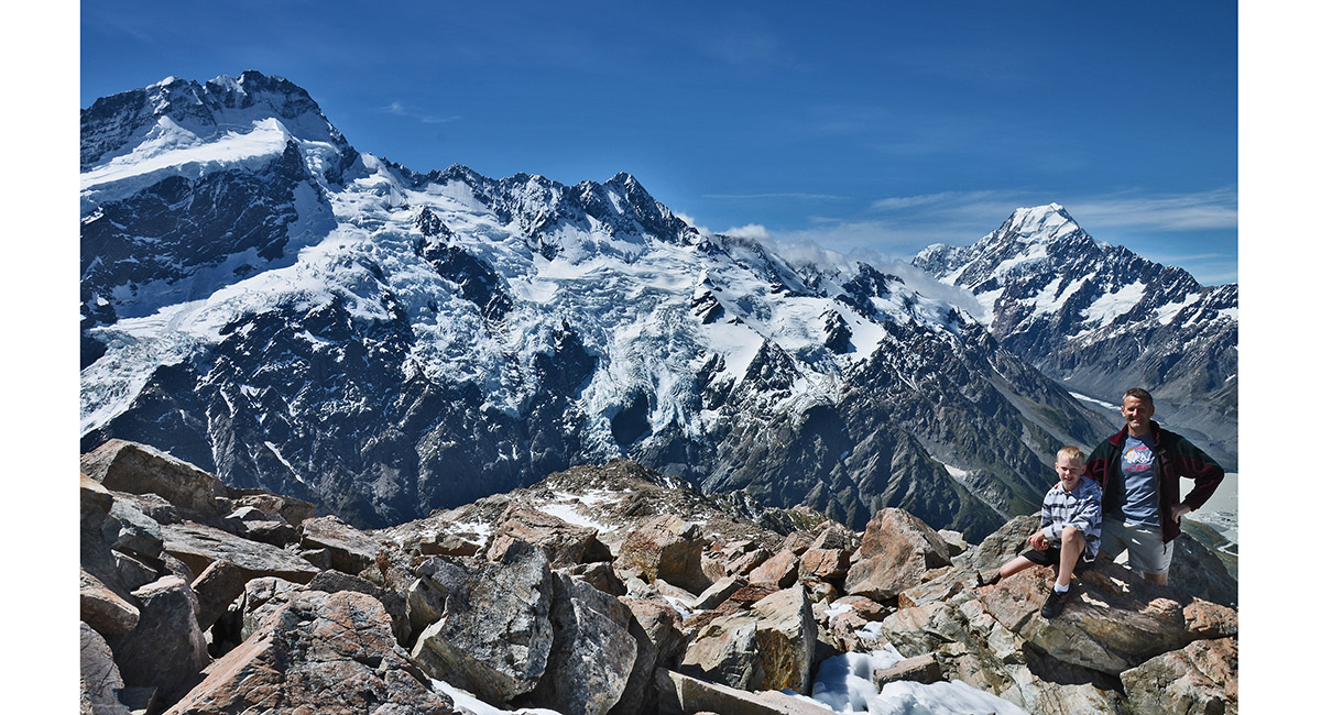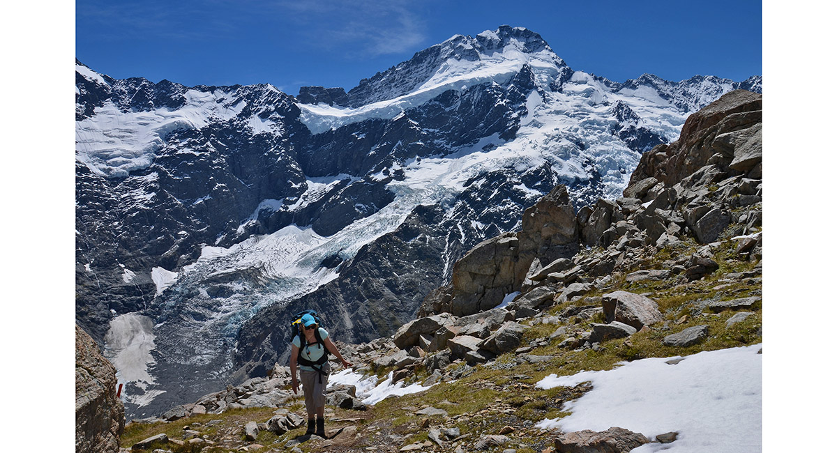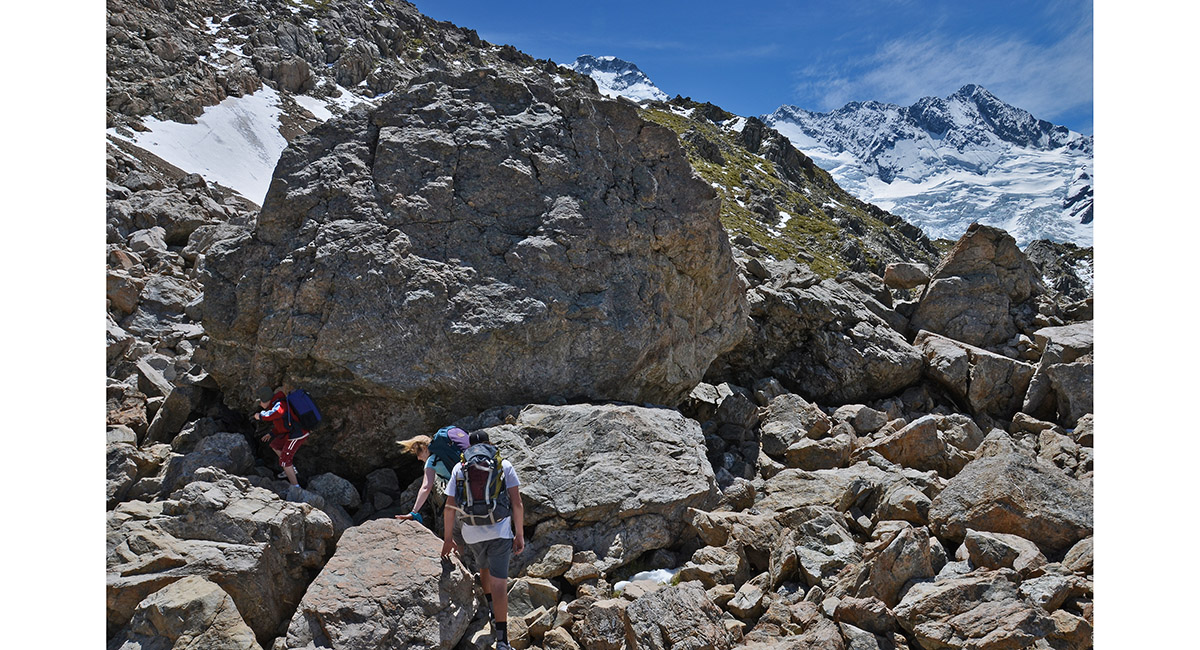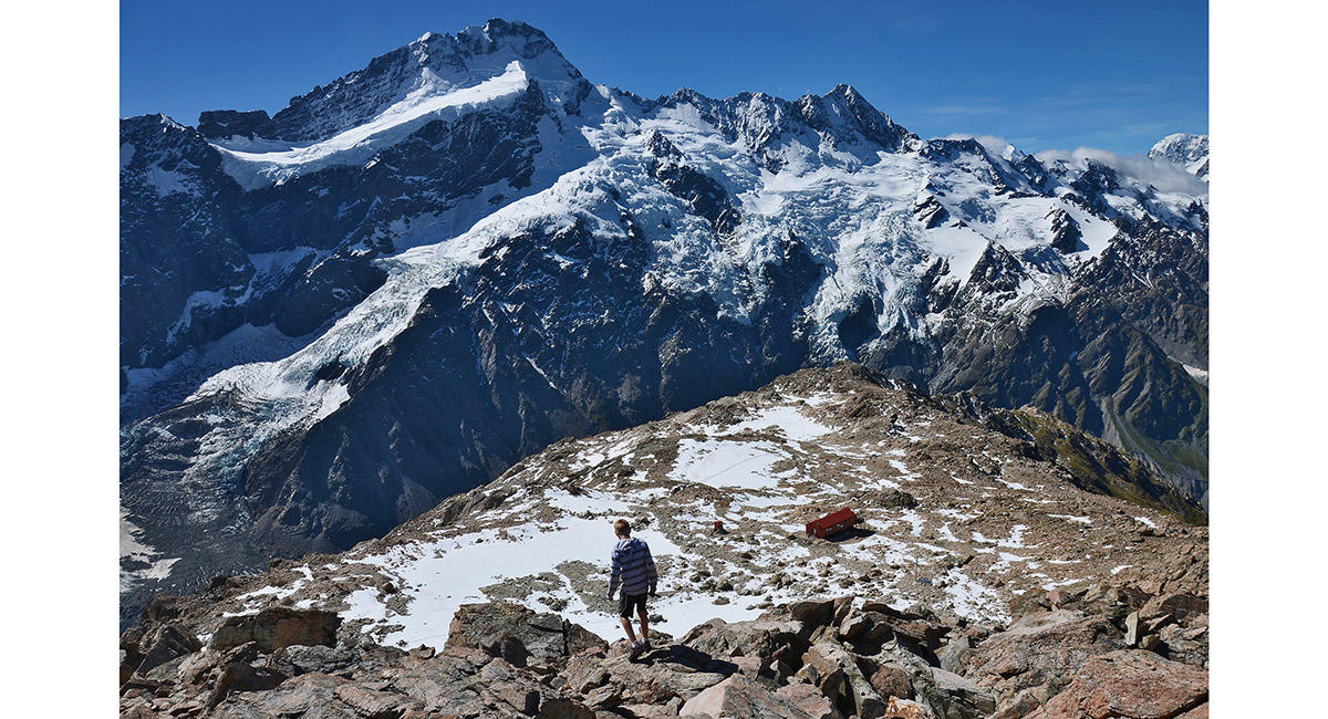 A view up the ridge to Mt Ollivier, left and the Mueller Glacier