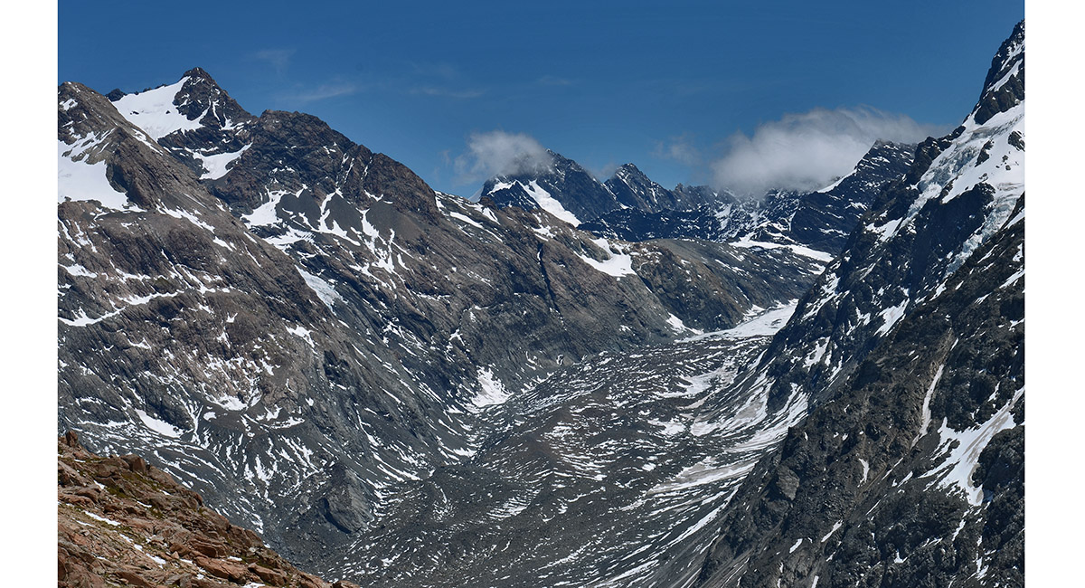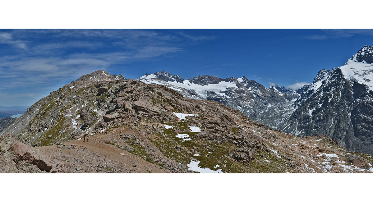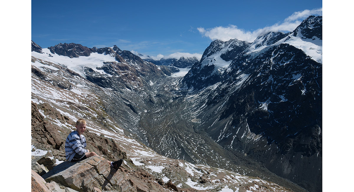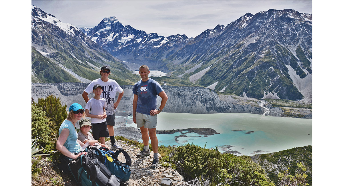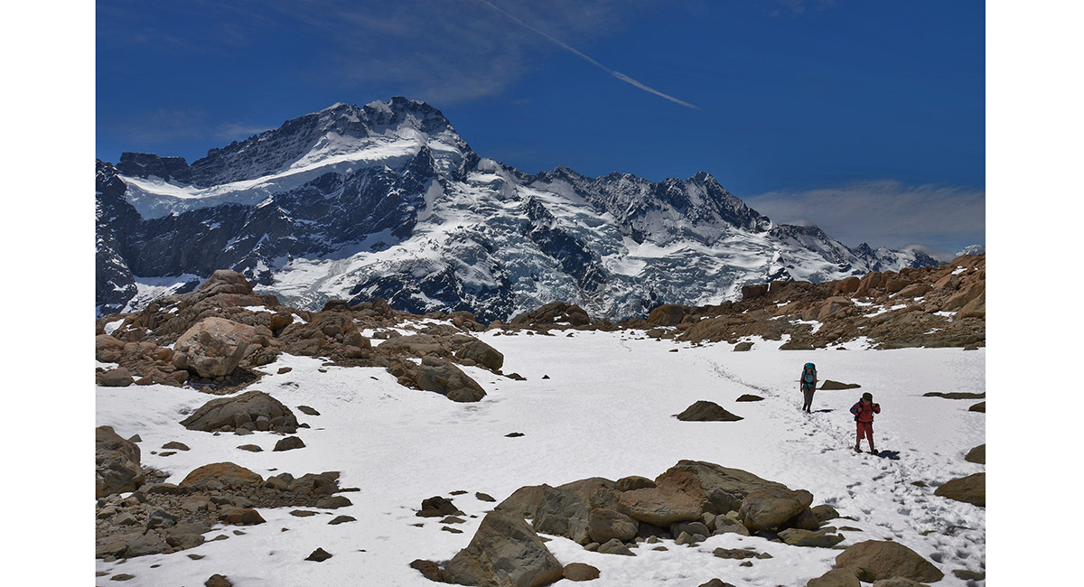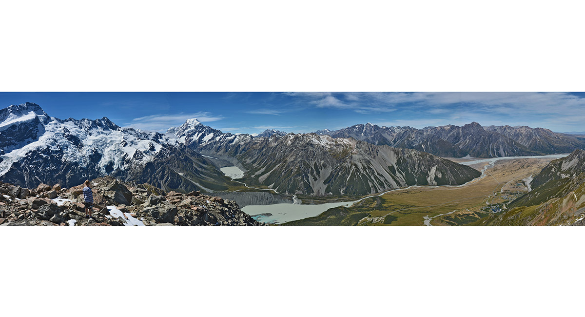 A view up the ridge to Mt Ollivier, left and the Mueller Glacier