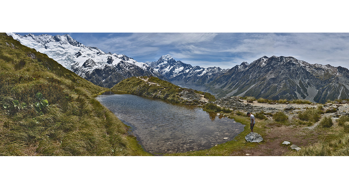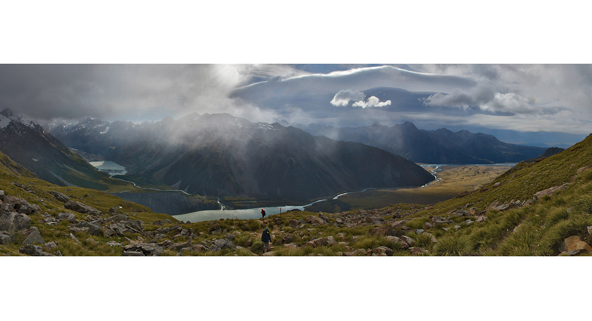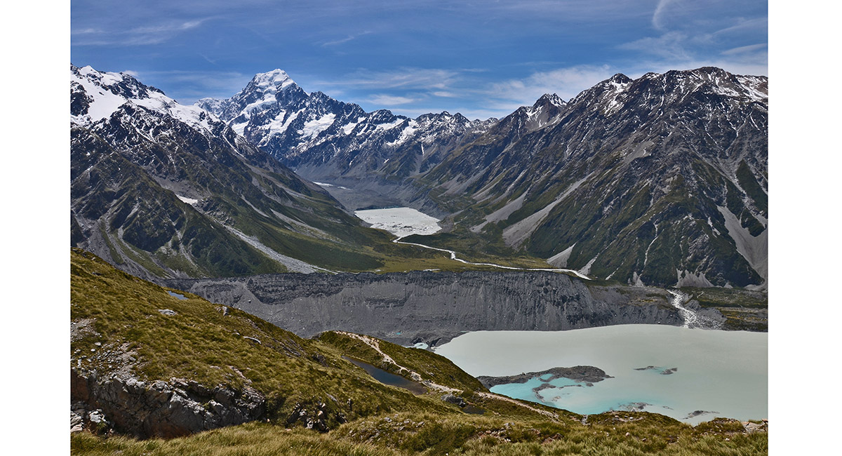 Above Sealy Tarn. The terminal lake of Mueller Glacier below