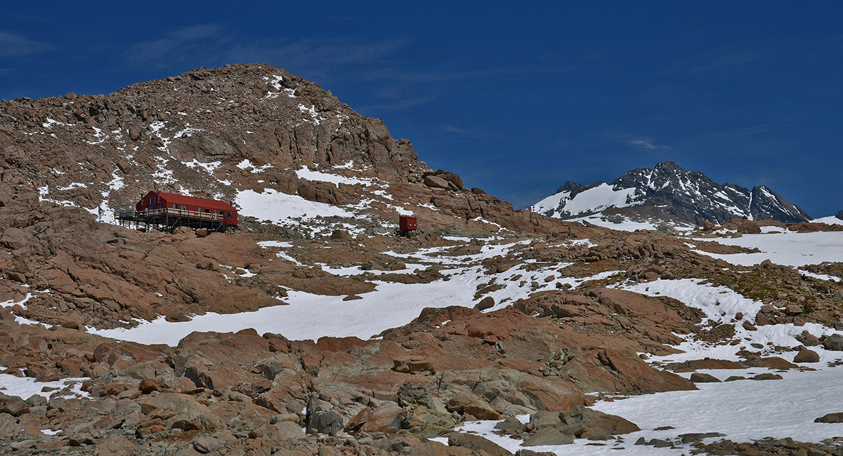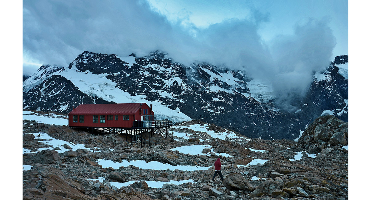 Mueller Hut, with Mt Ollivier (1,933m) overhead
