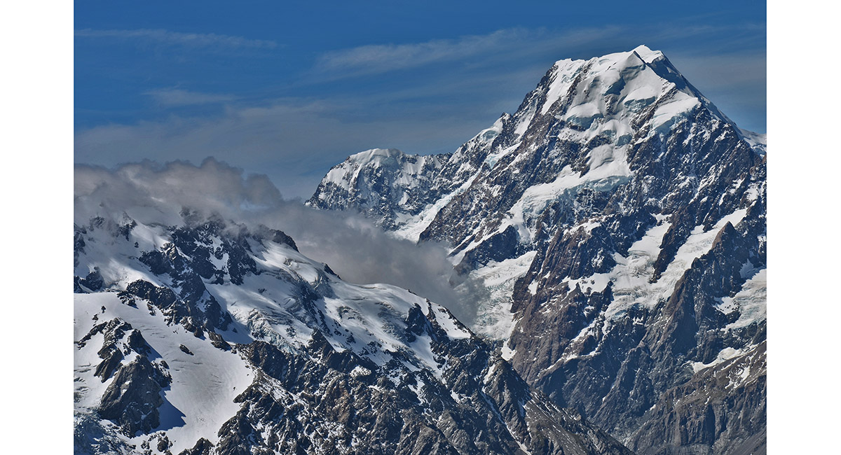 Mt Hicks (3,198 - centre) and Aoraki Mt Cook (3,724)