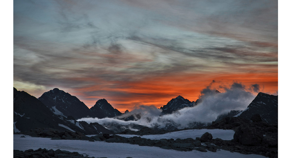 From left, Mt Sefton, the Footstool, Mt Hicks and Aoraki Mt Cook at sunset