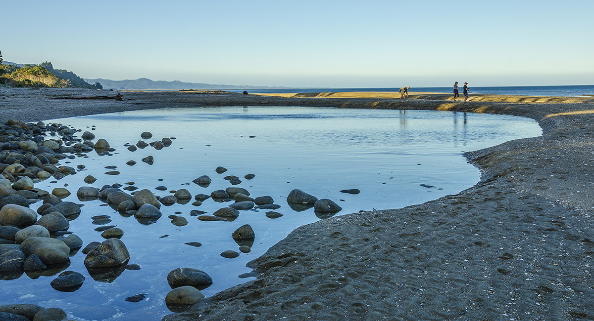 The beach at Milnthorpe, looking north to Collingwood, Golden Bay, New Zealand
