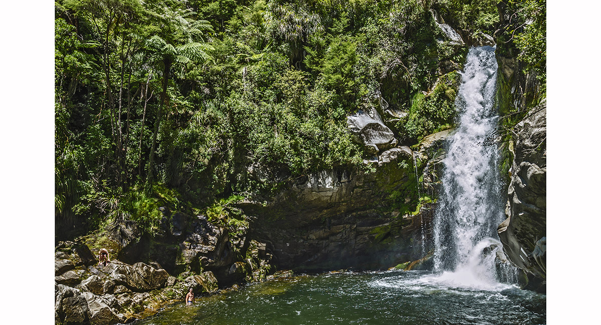 On the Deliverance Cove track, looking south to Matira / Castle Rock (162m), Castle Point, New Zealand