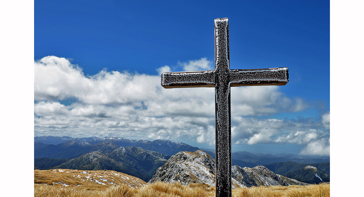 The memorial cross to soldiers killed in the second world war, on the summit of Mount Hector (1,529m), looking north, Tararuas