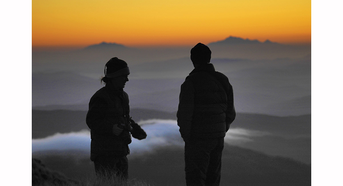 Campsite beneath Tiraha (1,668m) at dawn, looking out to the Hawkes Bay, Ruahines