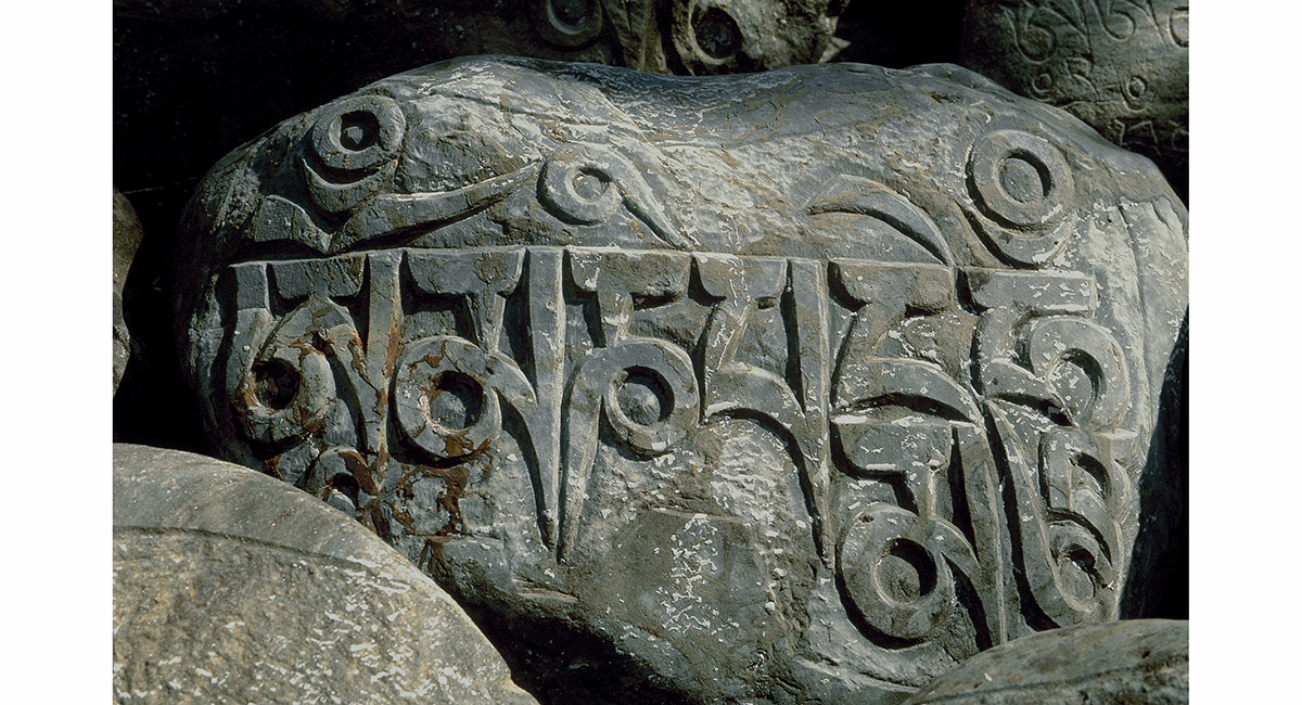 Meaningful art - a beautiful example of the countless carved mani stones placed along the trail