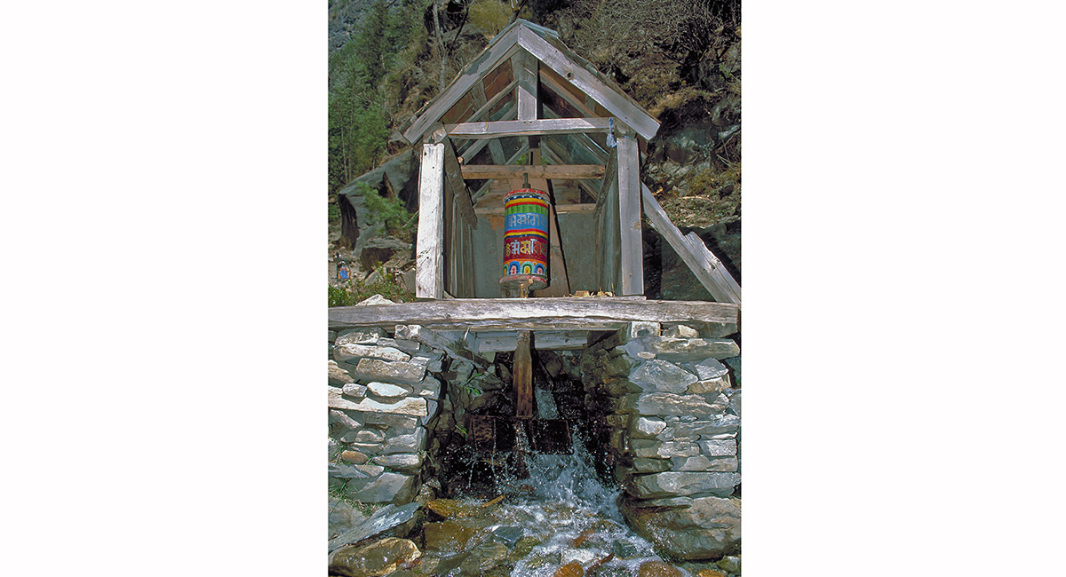 Harnessing nature’s power for spiritual purposes – a water powered prayer wheel above Chame