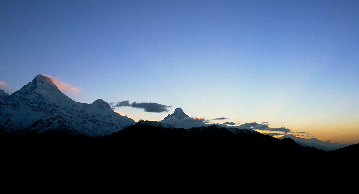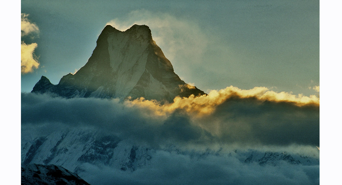 Machhapuchhare (6,997m) pierces the cloud, viewed from Poon Hill (3,000m) at dawn