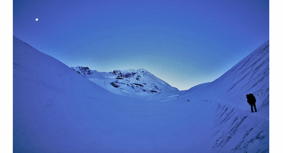 From High Camp to Thorung La an early start in a full moon dawn is required to enjoy firm snow and a tour-group free trail