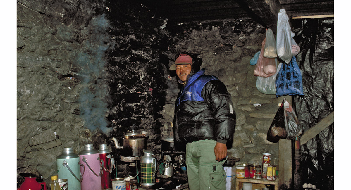 Inside the teahouse at Thorung La the Tea-man does a roaring trade