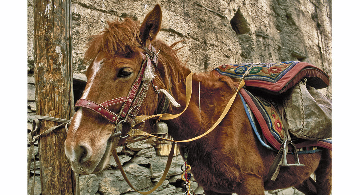 The trusty pony – a main-stay for load carrying below 3,500m in the Annapurna region. Jharkot