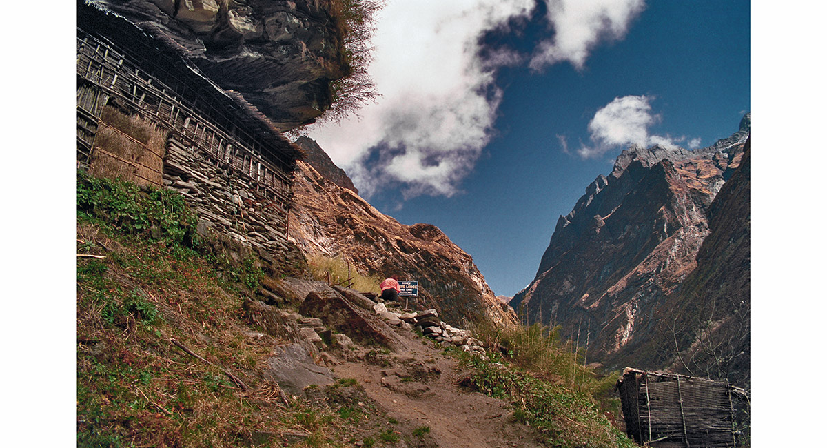 Taking a pitstop on the trail between Chhomrong and Annapurna Base Camp