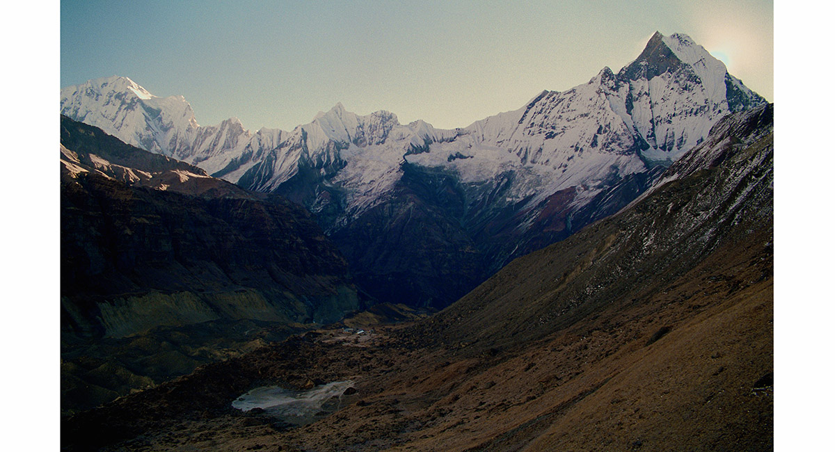 Machhapuchhare (right) and Base Camp, from Annapurna Base Camp